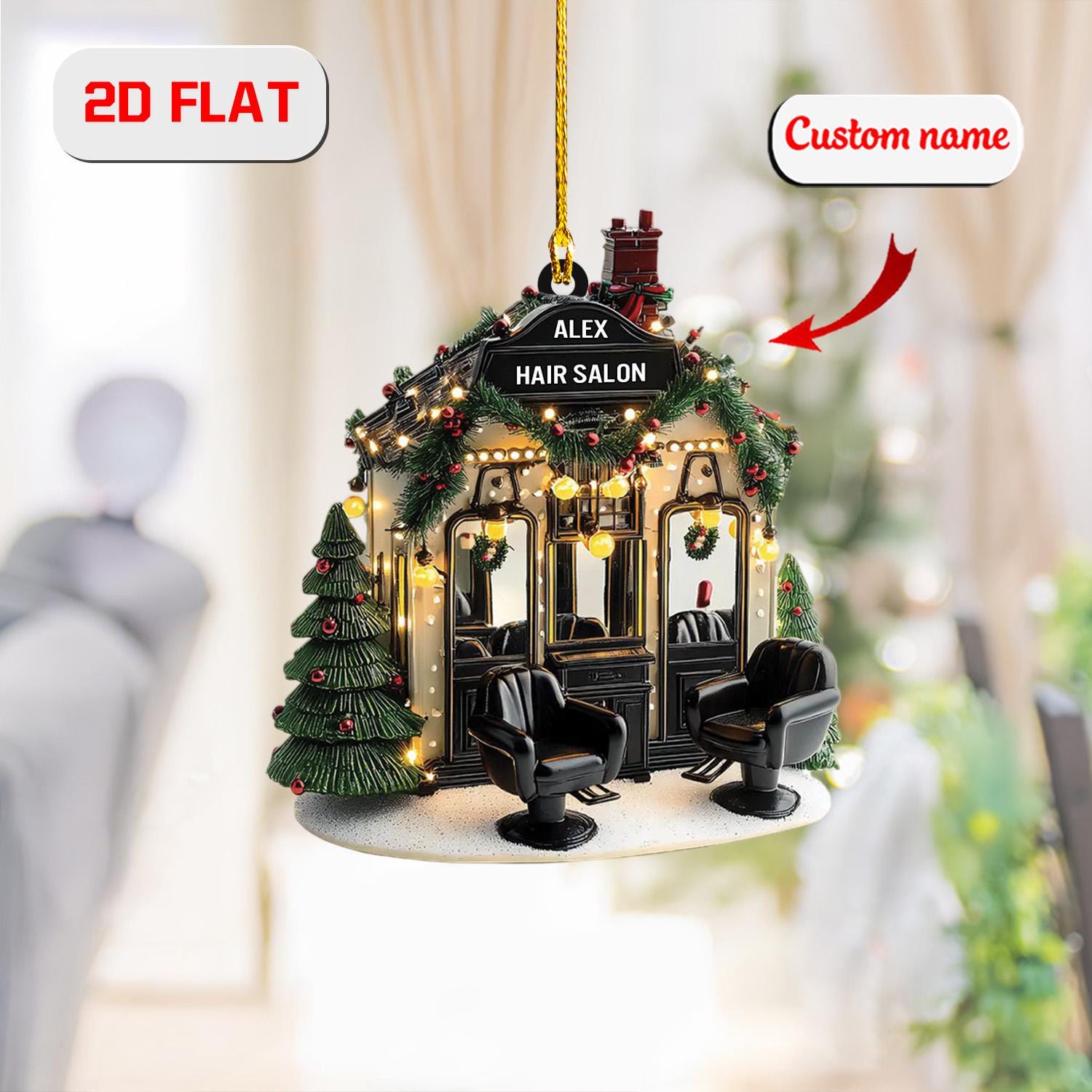 2D Acrylic Christmas Ornament, Hair Salon Holiday Decor, Custom Barber Ornament, Unique Xmas Tree Gift for Stylist, Christmas Gift