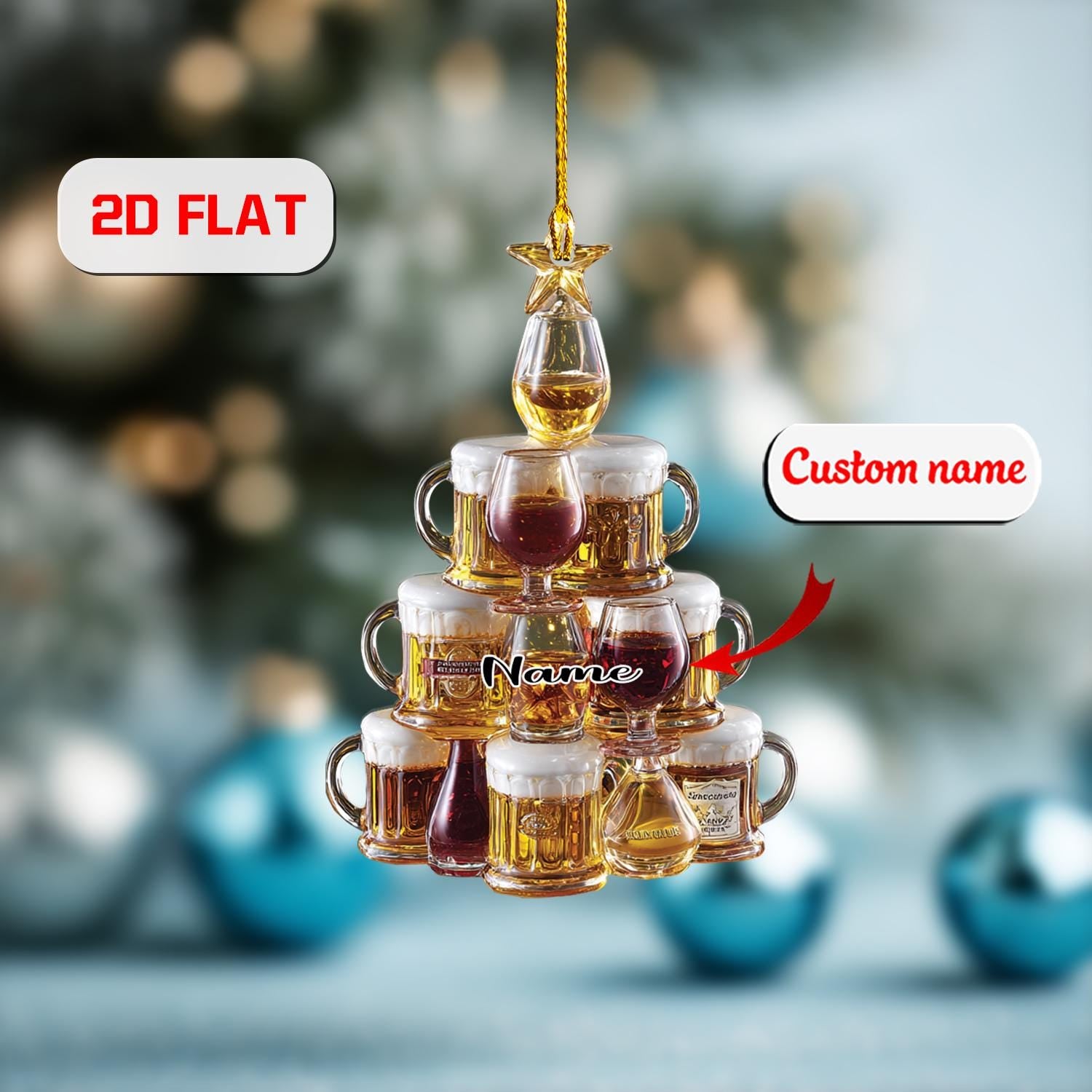 2D acrylic ornament, flat christmas ornament, personalized beer ornament, custom name ornament, funny ornament, bar pub gift, xmas decor