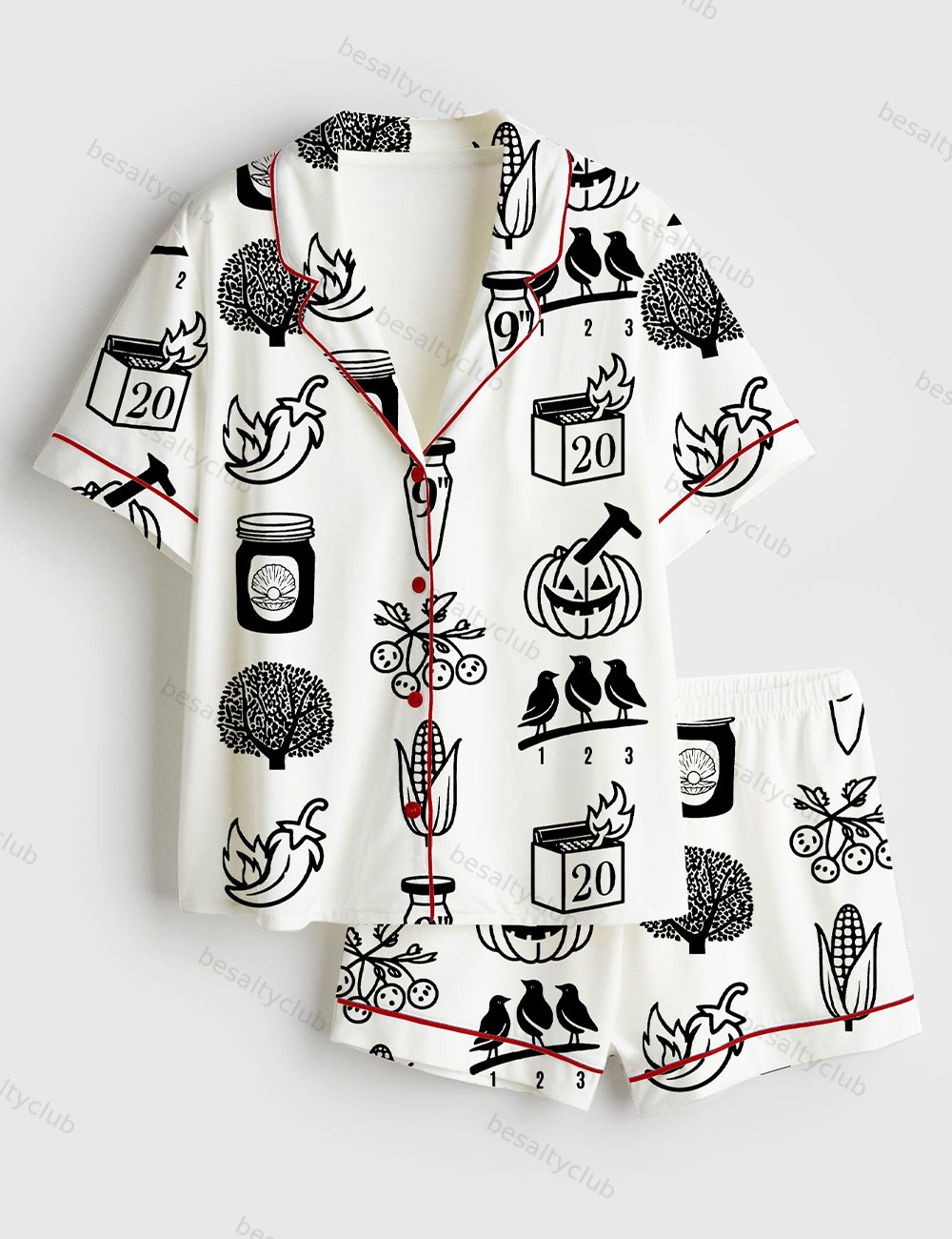 90s Rock Icons Grunge Style Retro Music Rock Band Print Short Sleeve Satin Pajama Set