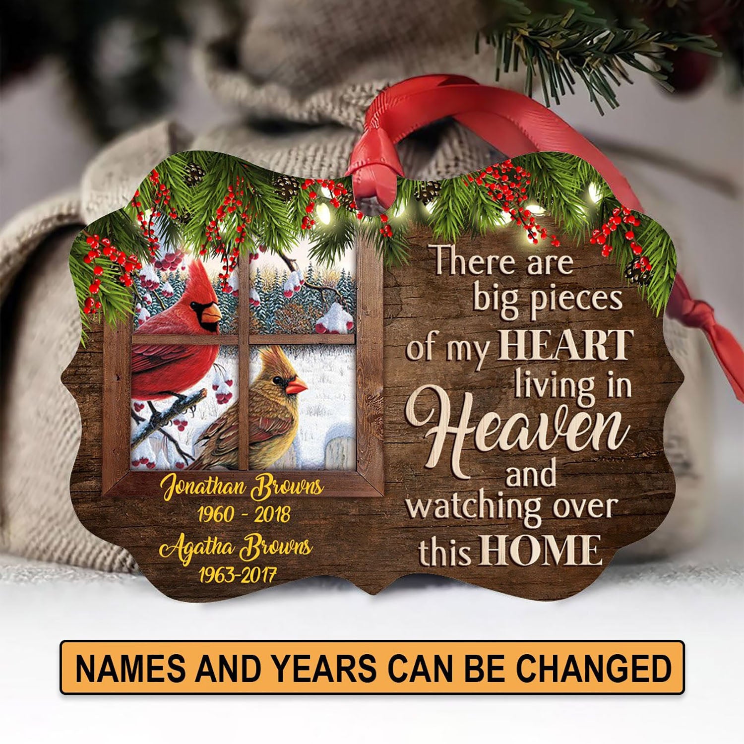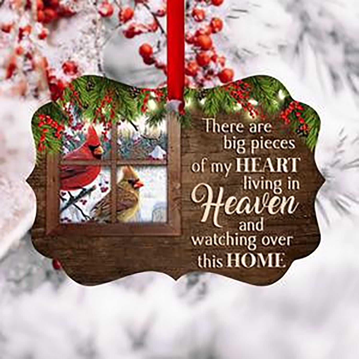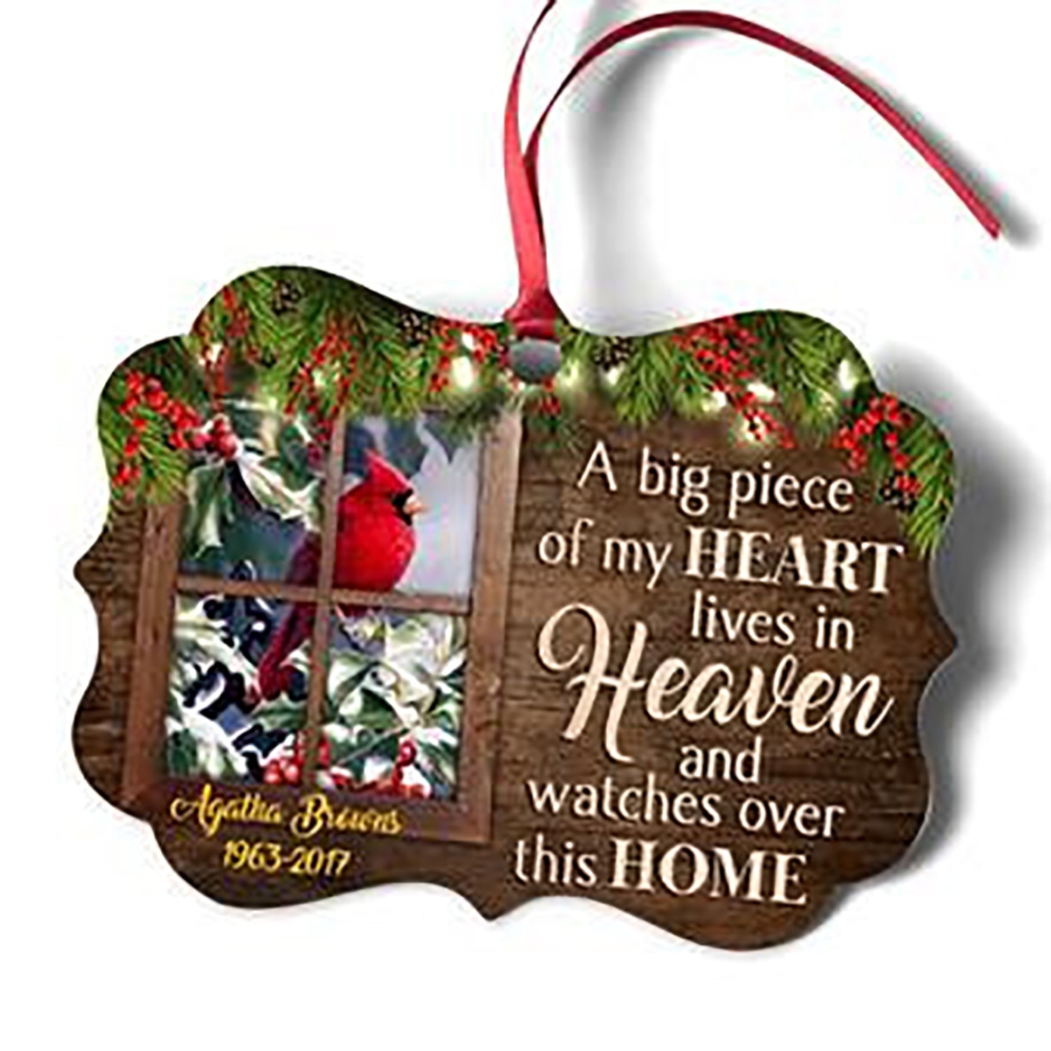 A Big Piece Of My Heart Lives In Heaven - Personalized Memorial Cardinal Bird Aluminium Ornament, Christmas Gift, Christmas Decoration