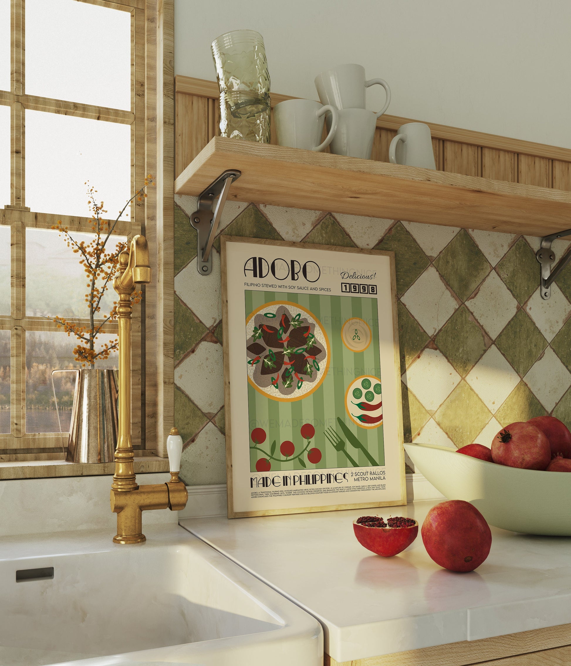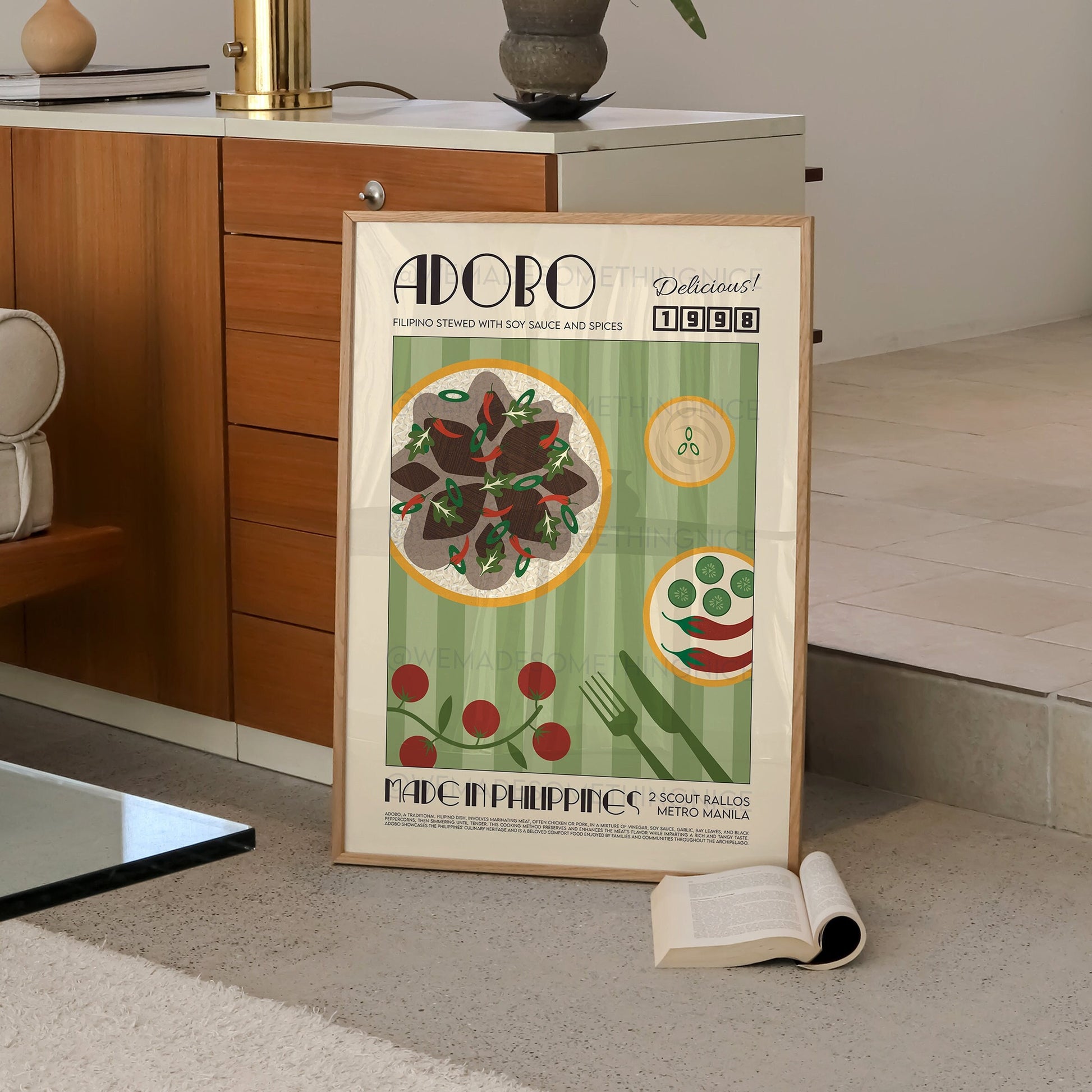 Adobo Poster, Food Art, Kitchen Art, Kitchen Poster, Food Print, Modern Kitchen Decor, Illustration, Philippines Art, Retro Wall Art
