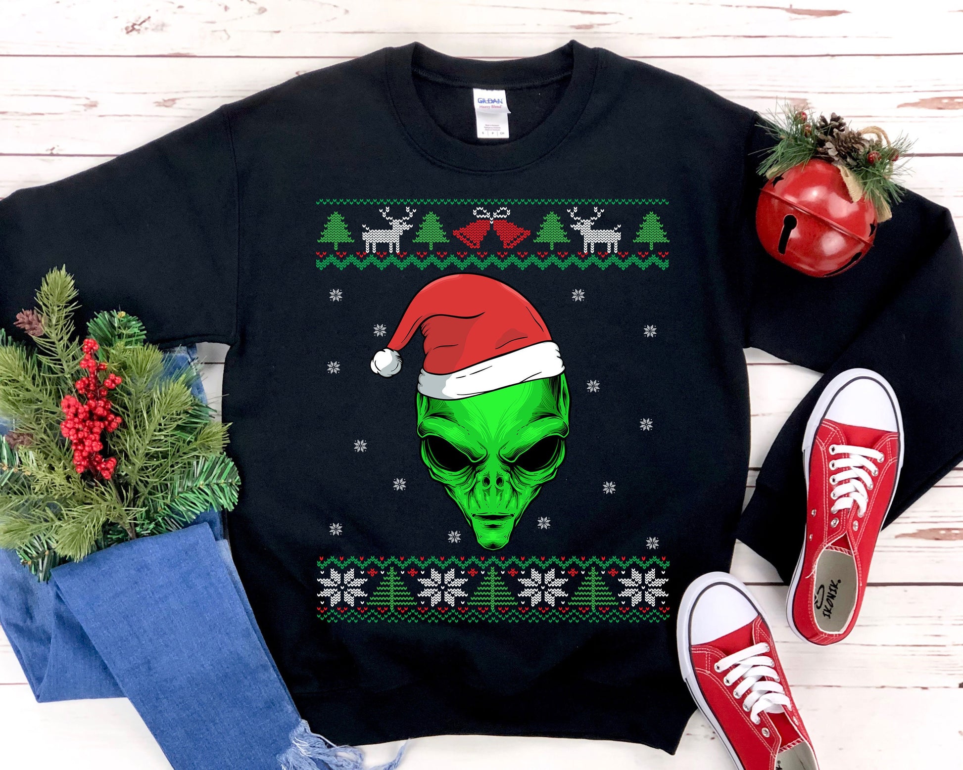 Alien Santa Ugly Christmas Sweatshirt, Funny UFO Shirt, Conspiracy Theory Enthusiast Gift, Area 51 Unisex Heavy Blend Crewneck Sweatshirt