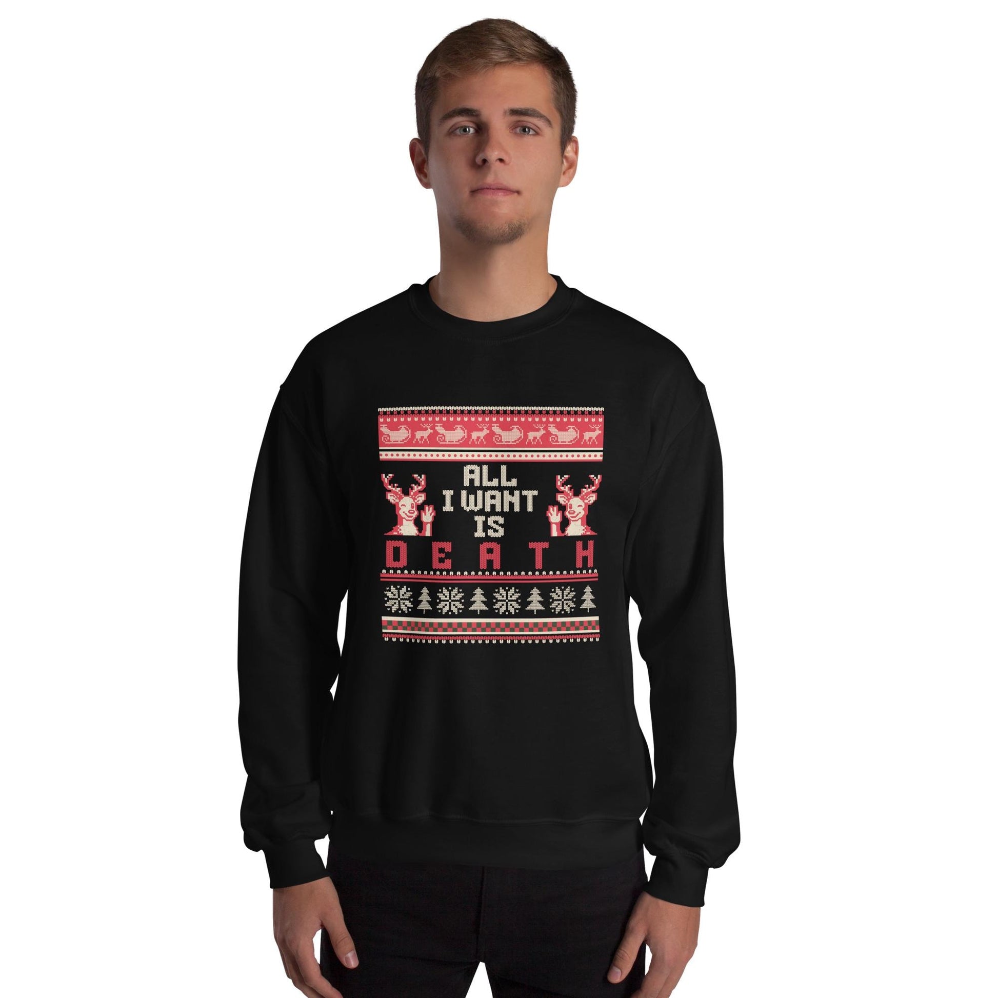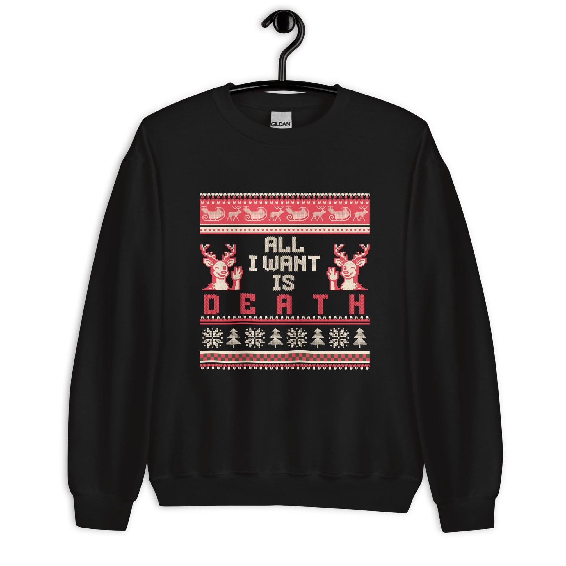 All I Want Is Death Christmas Jumper | Funny Dark Humour Xmas | Ugly Holiday Knitwear | Alternative Gothic Party Outfit