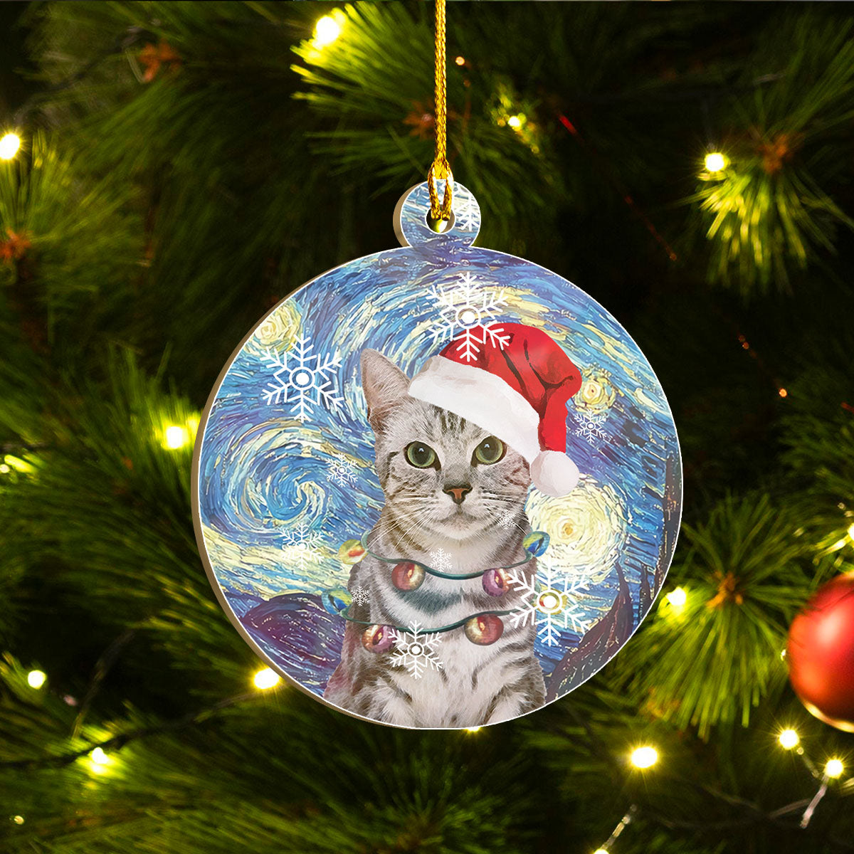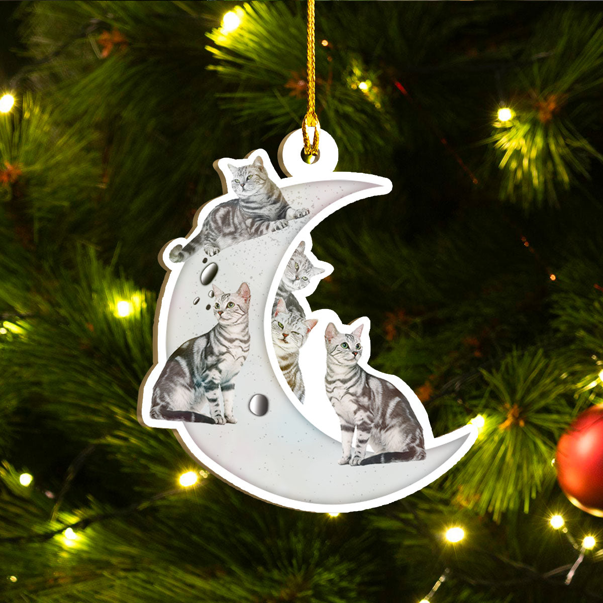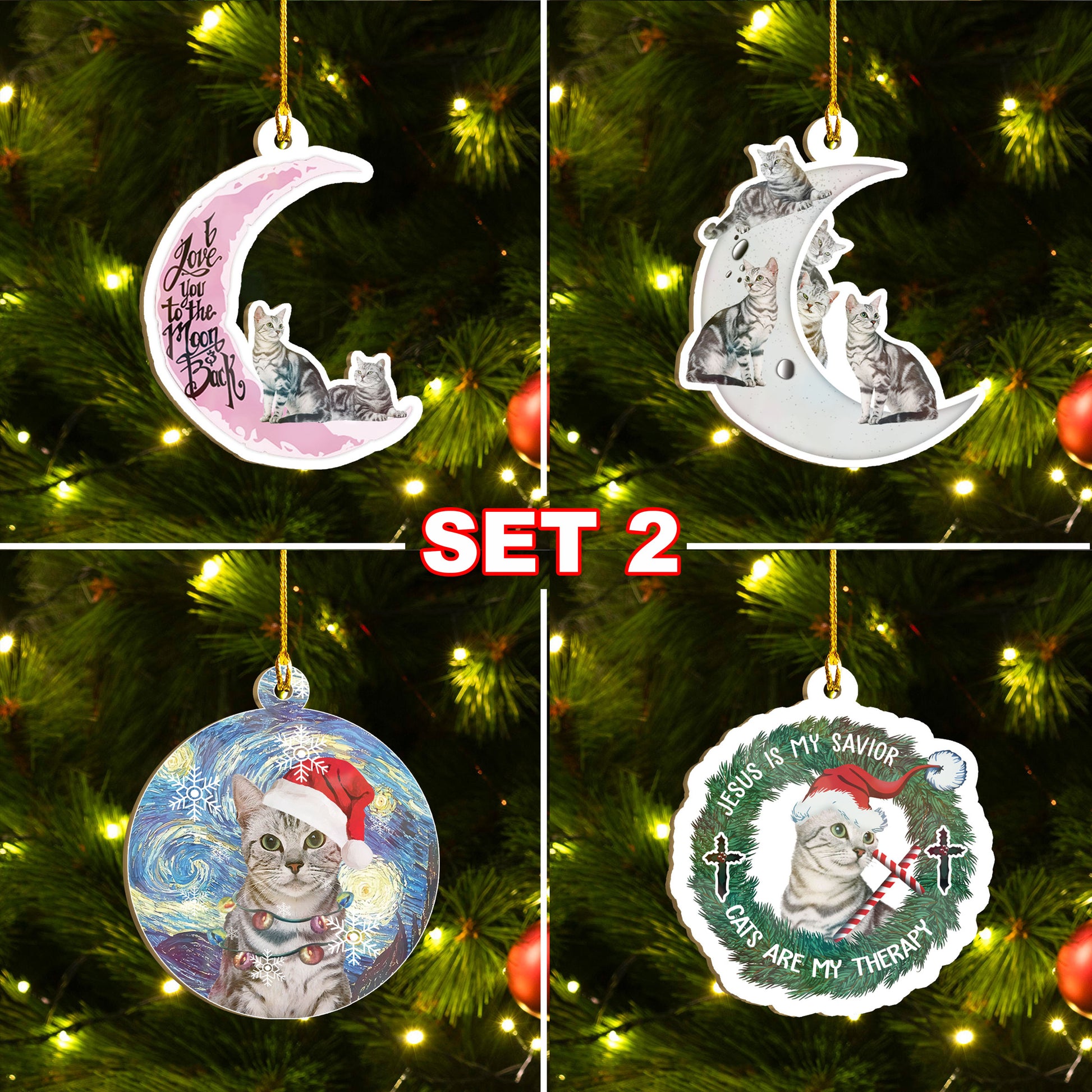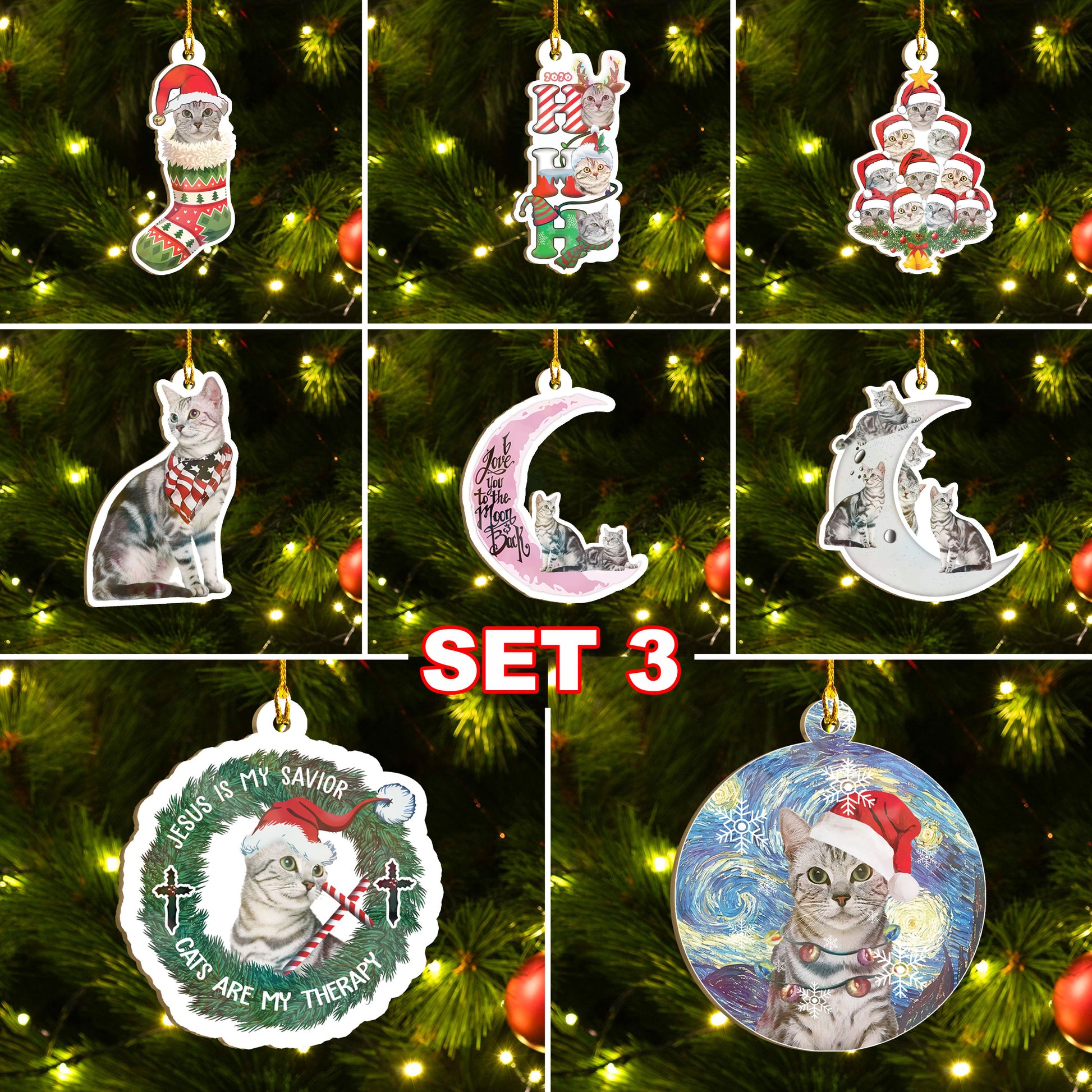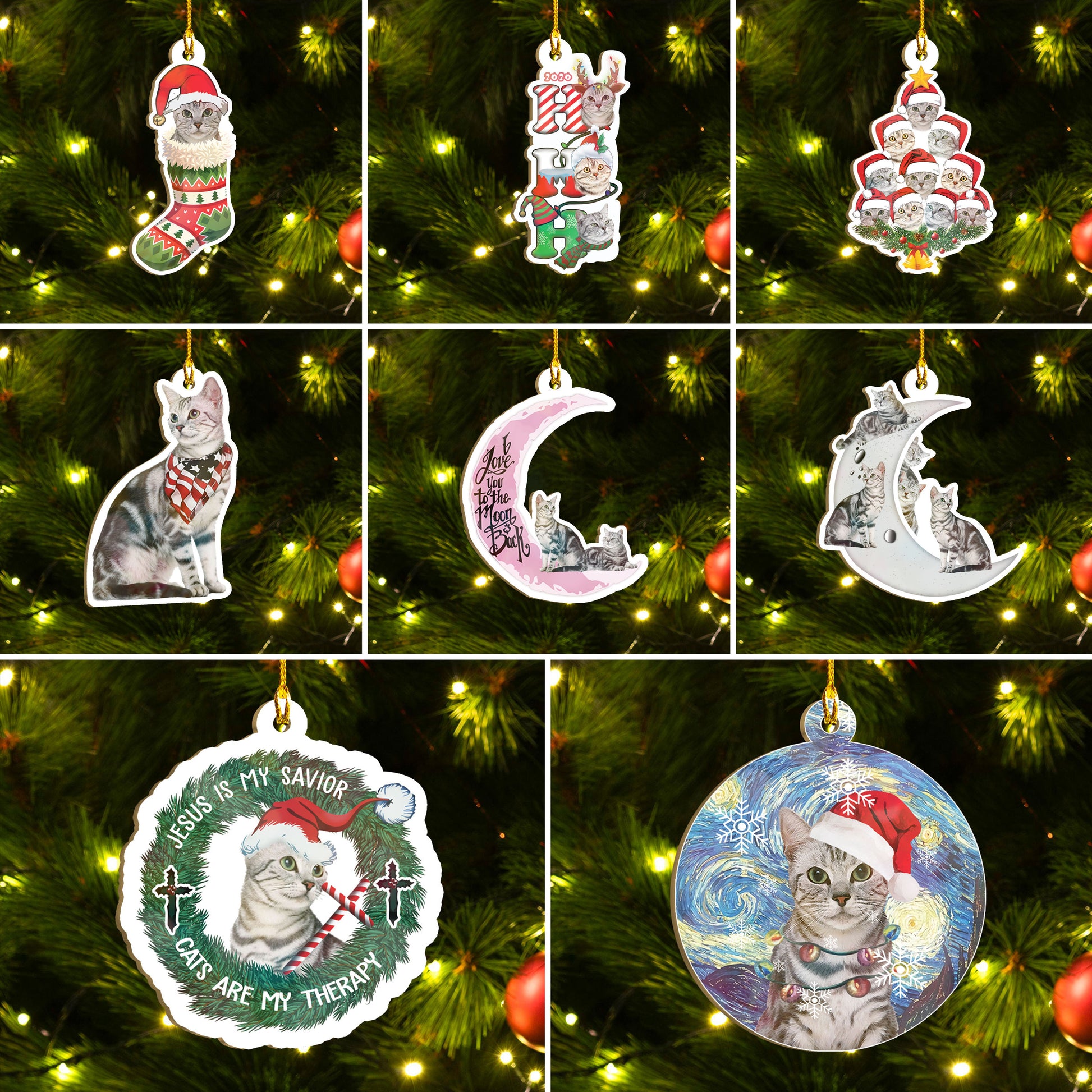 American Shorthair Cat Ornaments Set, Meowy Christmas Ornaments Set, Funny Xmas Ornaments Family Gift Idea For Cat Lover