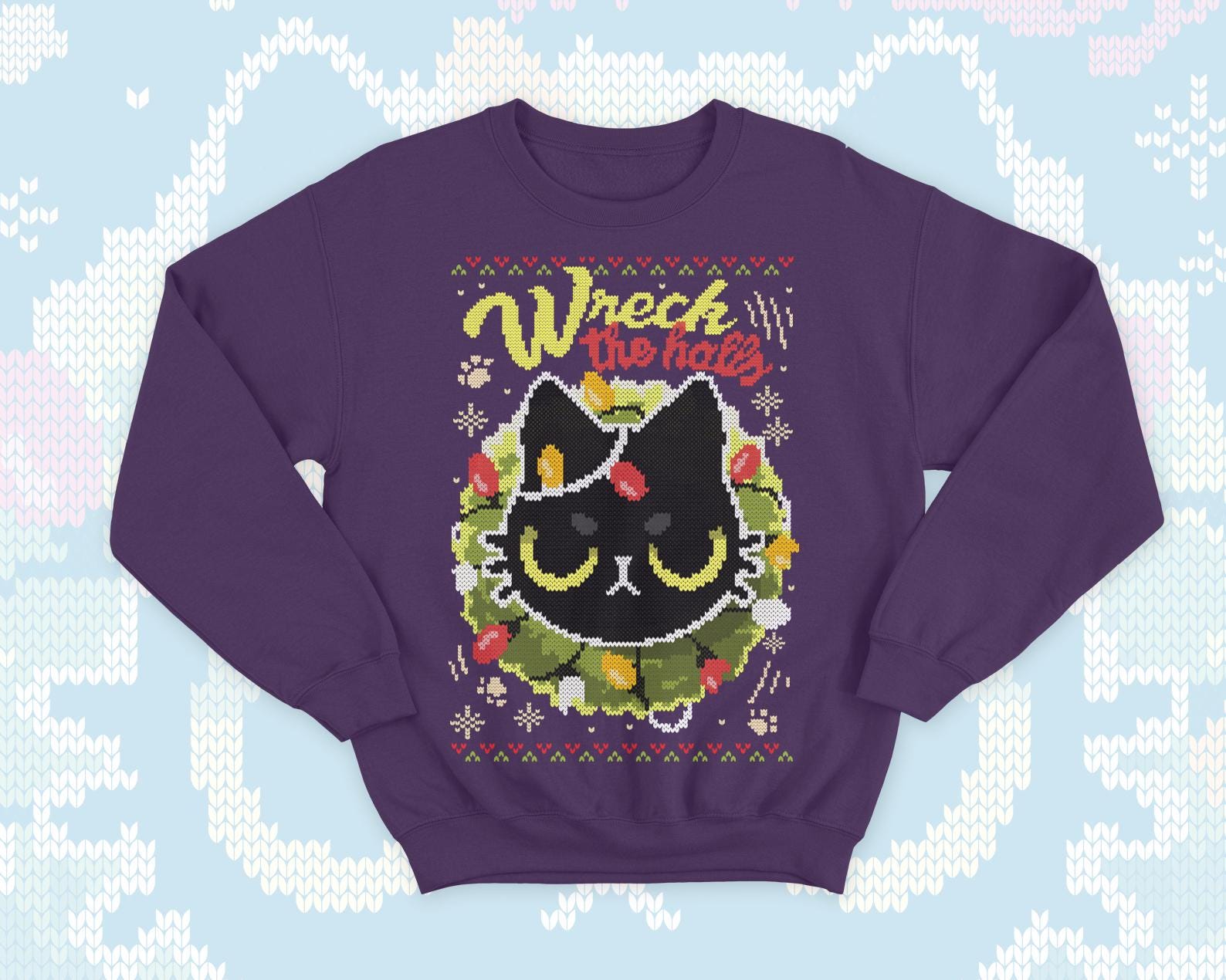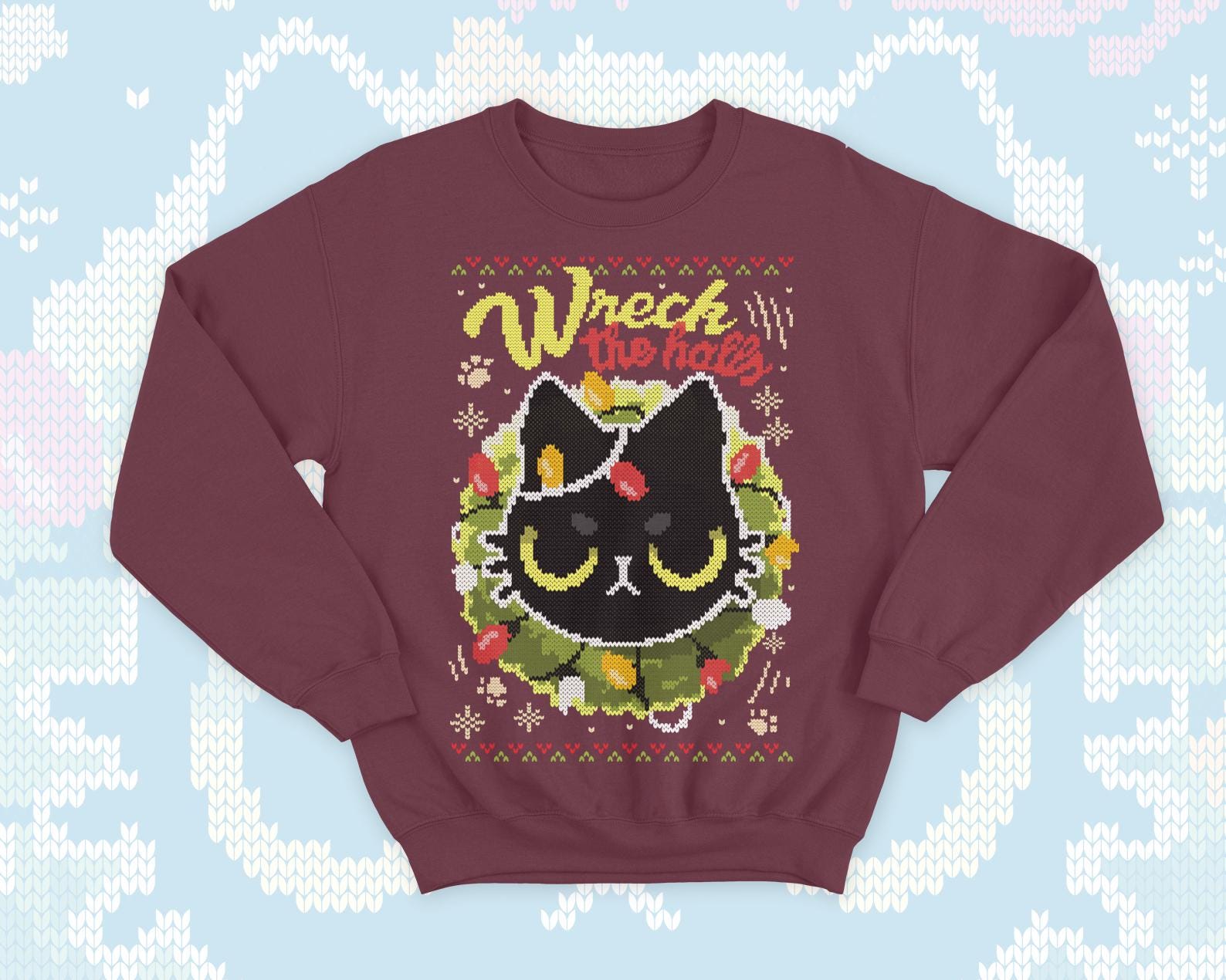 Angry cat Ugly Christmas - Cute kitty gift - geek sweatshirt - naughty kitten - Santa present