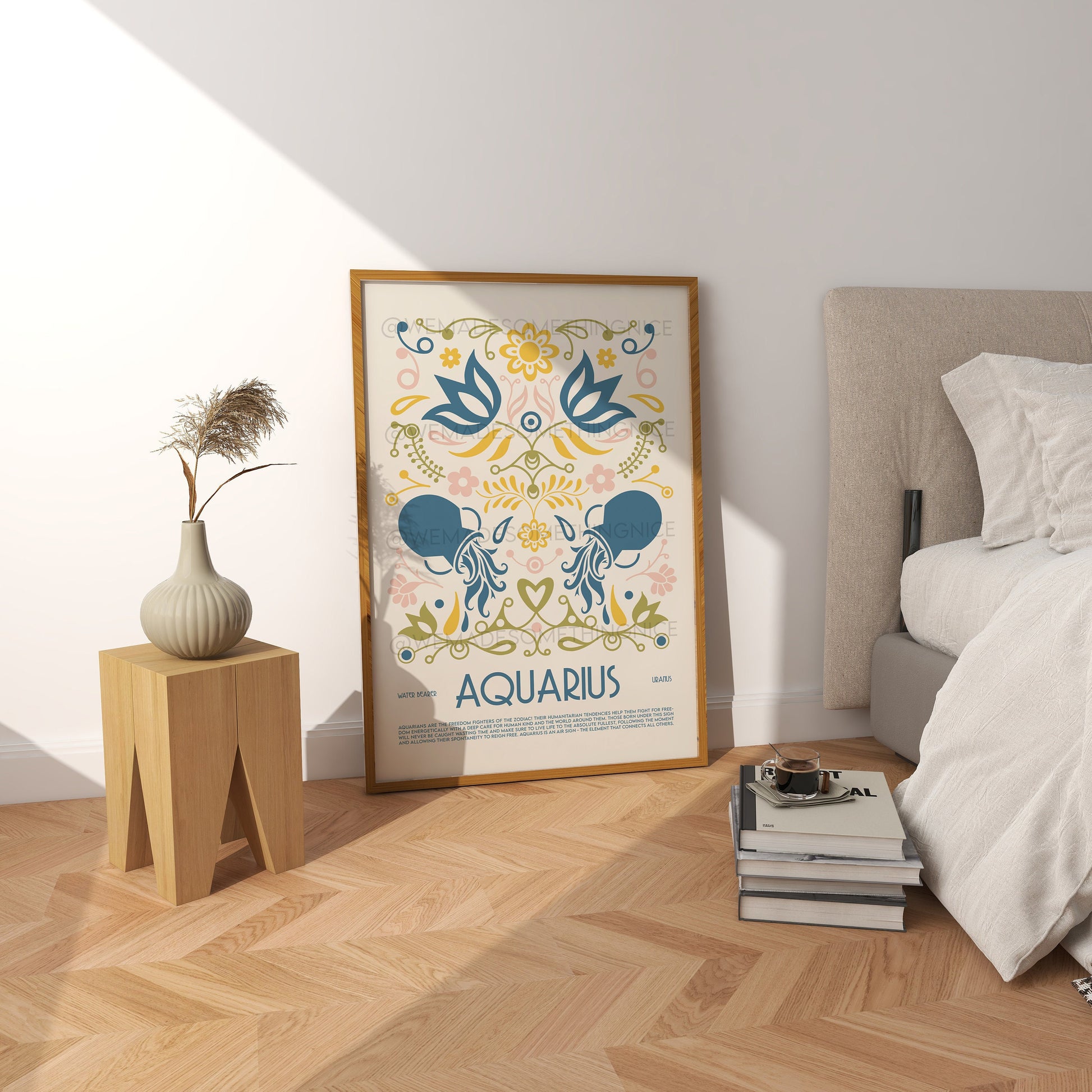 Aquarius Poster, Horoscope Print, Astrological Wall Art, Illustration, Exhibition Poster, Zodiac Poster, Birthday, Boho, Housewarming