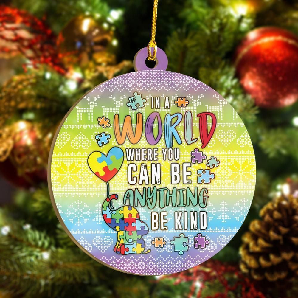 Autism Awareness In A World Where You Can Be Anything Be Kind Ornament, Christmas Ornament Gift, Christmas Gift, Christmas Decoration