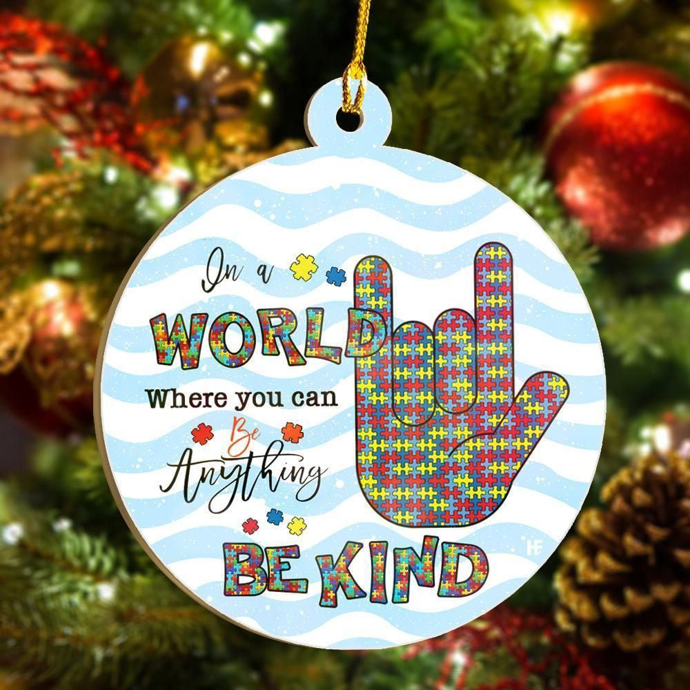 Autism In A World Where You Can Be Anything Be Kind Ornament, Christmas Ornament Gift, Christmas Gift, Christmas Decoration