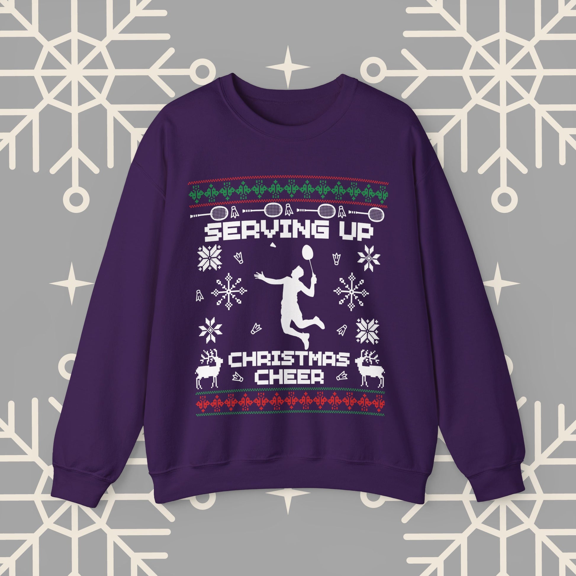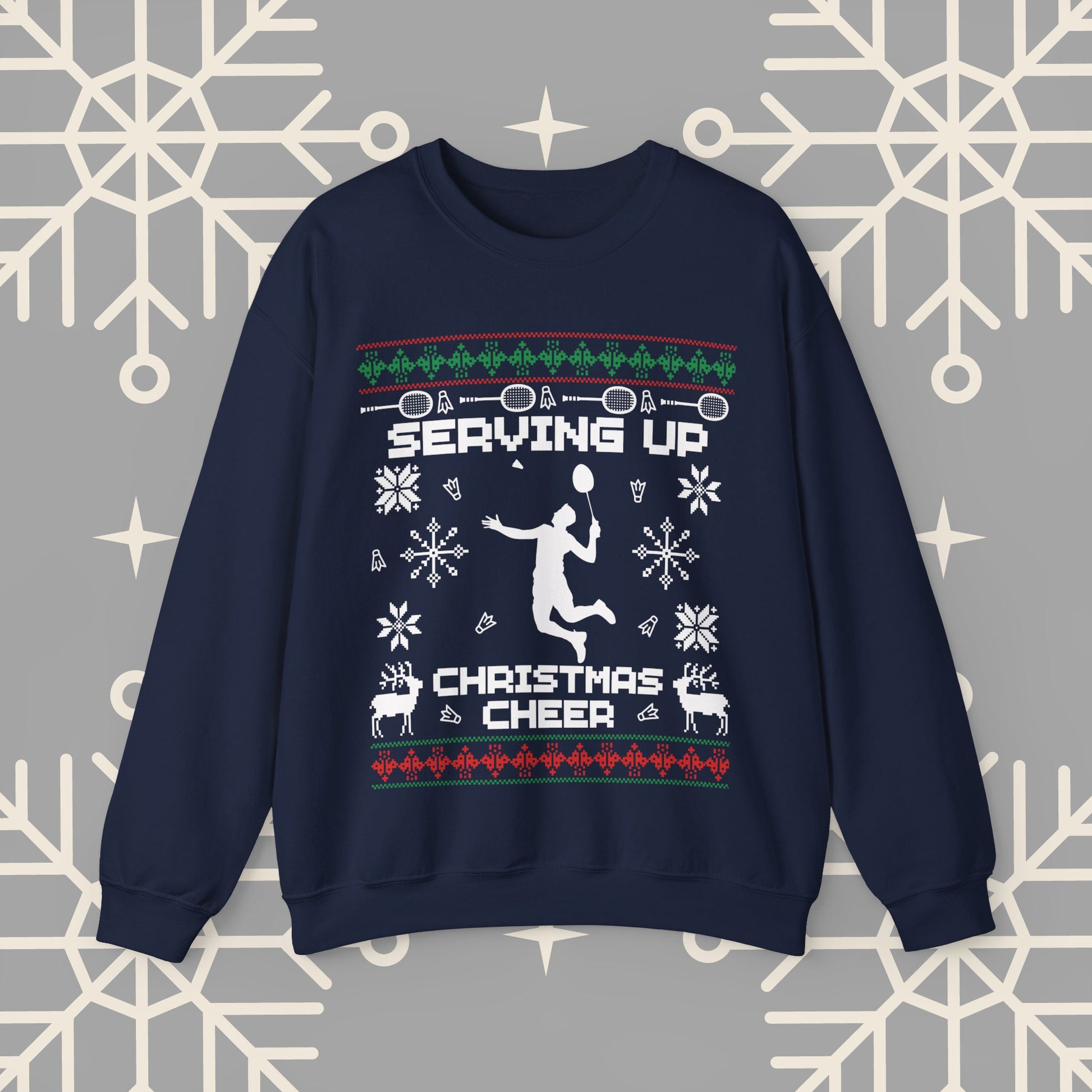 Badminton Ugly Christmas , Serving Up Christmas Cheer Sweatshirt, Badminton Holiday Jumper, Badminton Player Gifts