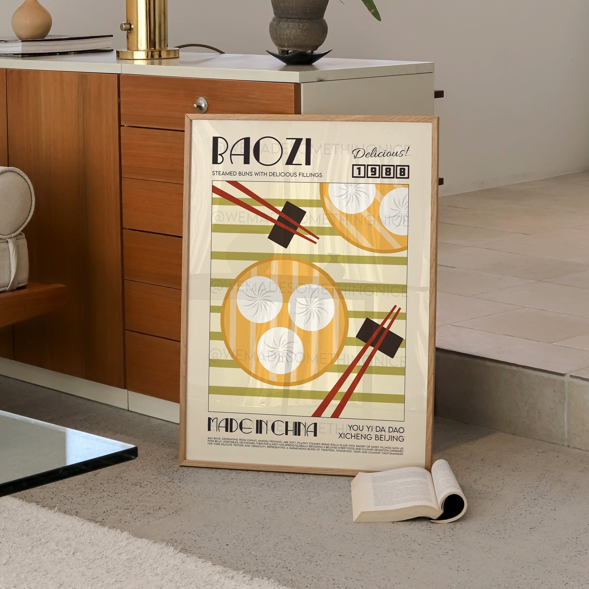 Bao Bun Poster, Kitchen Art, Kitchen Poster, Kitchen Wall Art, Asian Wall Art, Retro Wall Art, Food Poster, Food Print