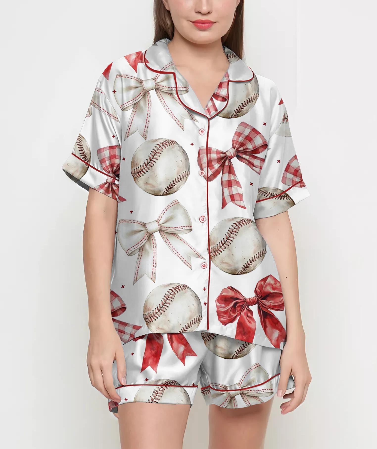 Baseball Coquette Pajamas Satin Set, Game Day Baseball Shirt,Mother's Day Gift, Birthday Gift, Gift For Her, Bridesmaid Gifts, Women Gift