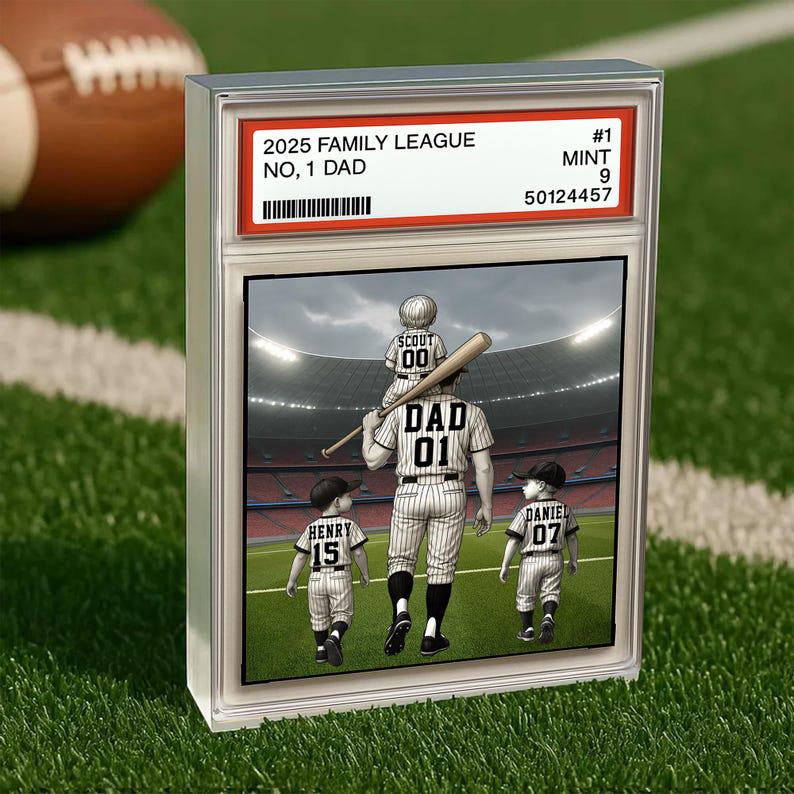 Baseball No. 1 Dad Grandpa Man & Kids Trading Card Style Personalized Acrylic Block Plaque Father's Day 2025 Gift for Baseball Dad, Husband
