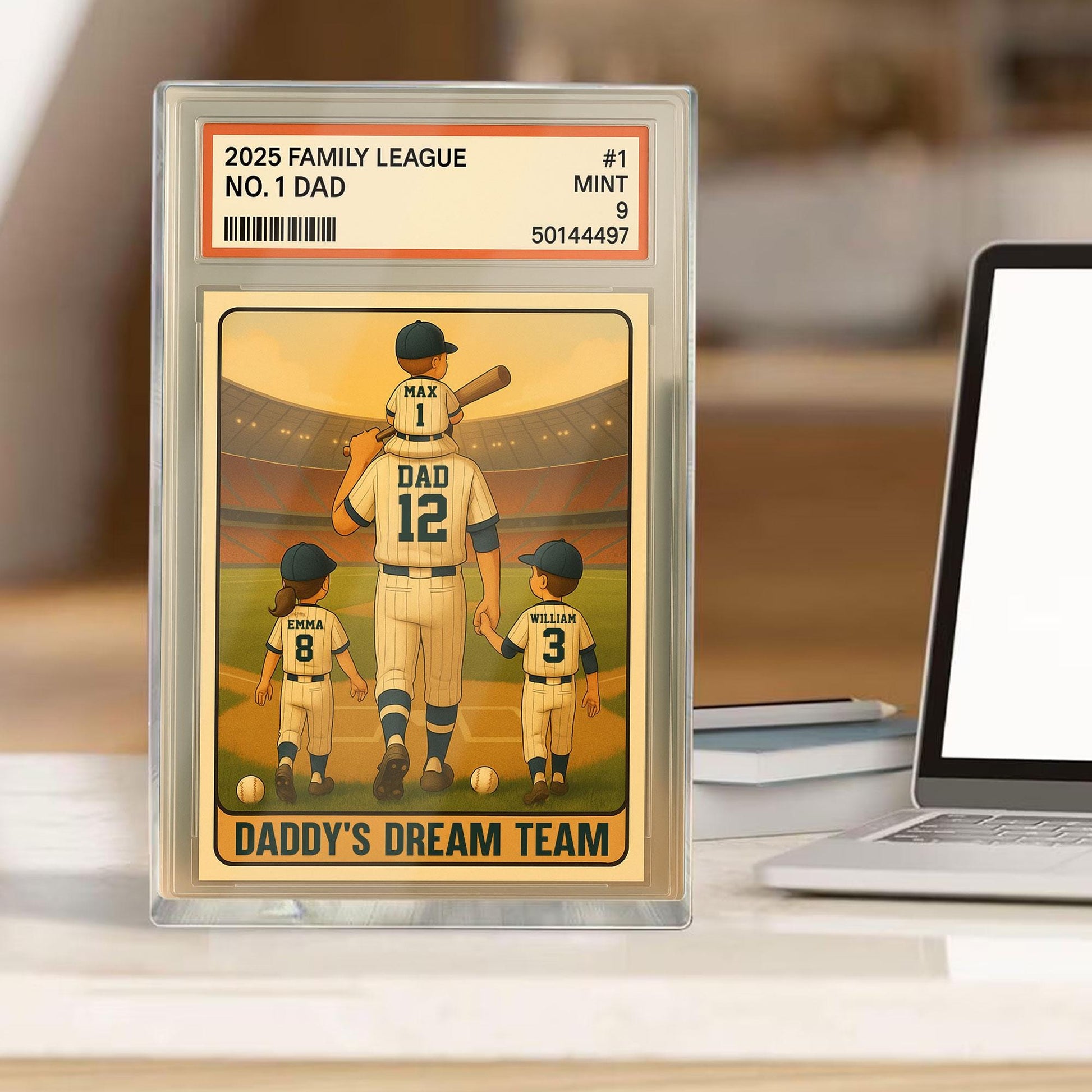 Baseball No. 1 Dad Man And Kids Trading Card Style Personalized Acrylic Block, Dad Plaque, Father's Day Gift for Baseball Dad, Husband.