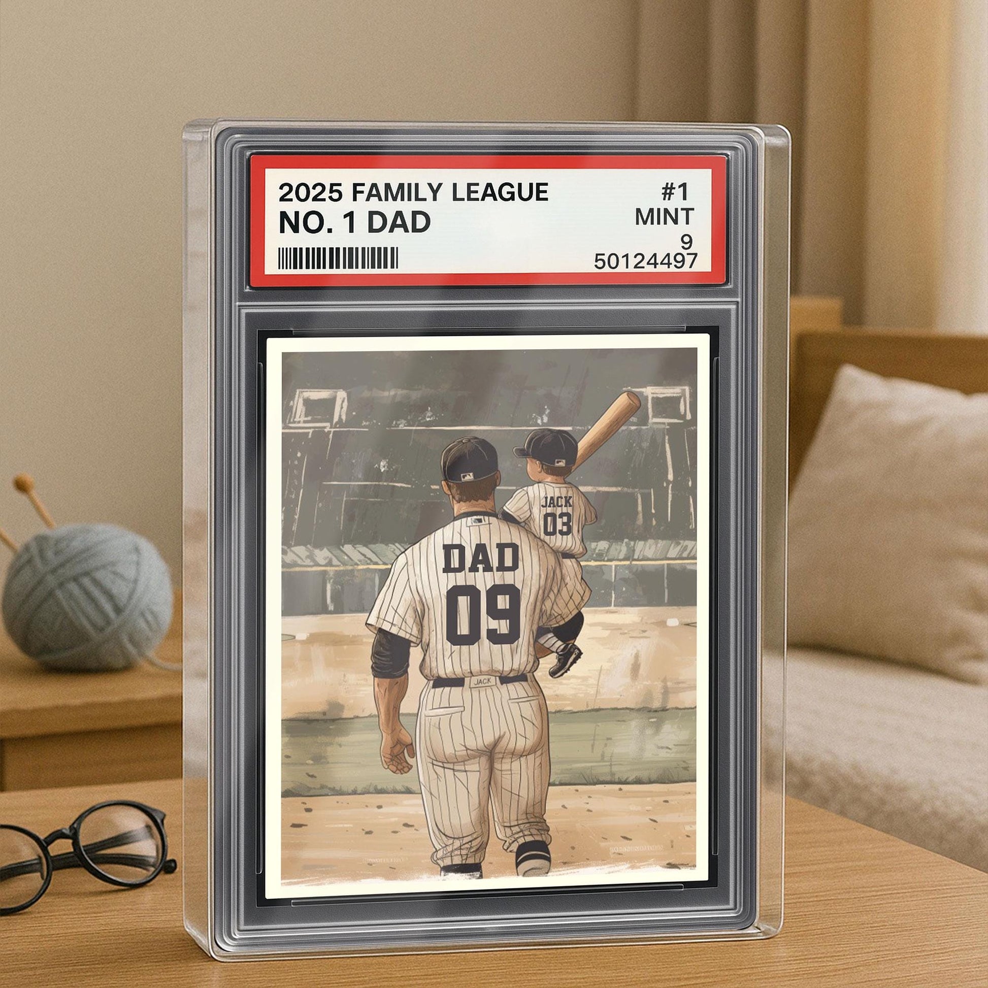 Baseball No. 1 Dad Man And Kids Trading Card Style Personalized Acrylic Block, Dad Plaque, Father's Day Gift for Baseball Husband, Dad