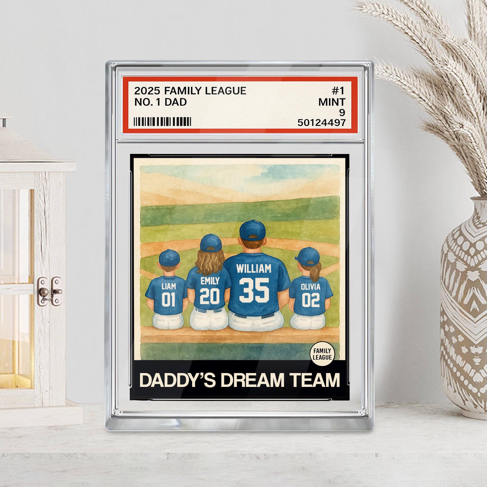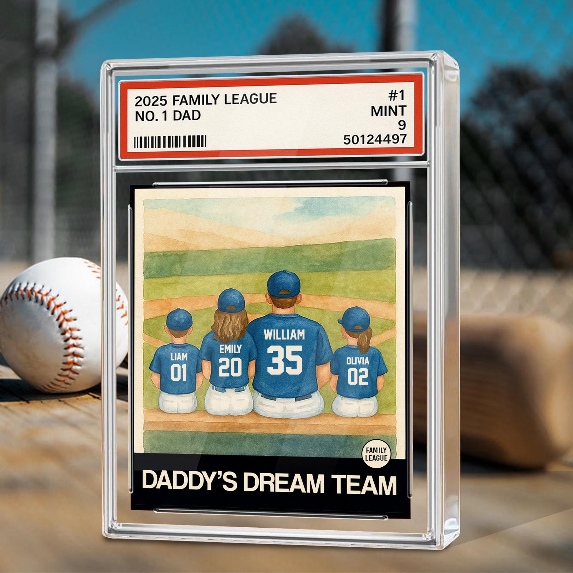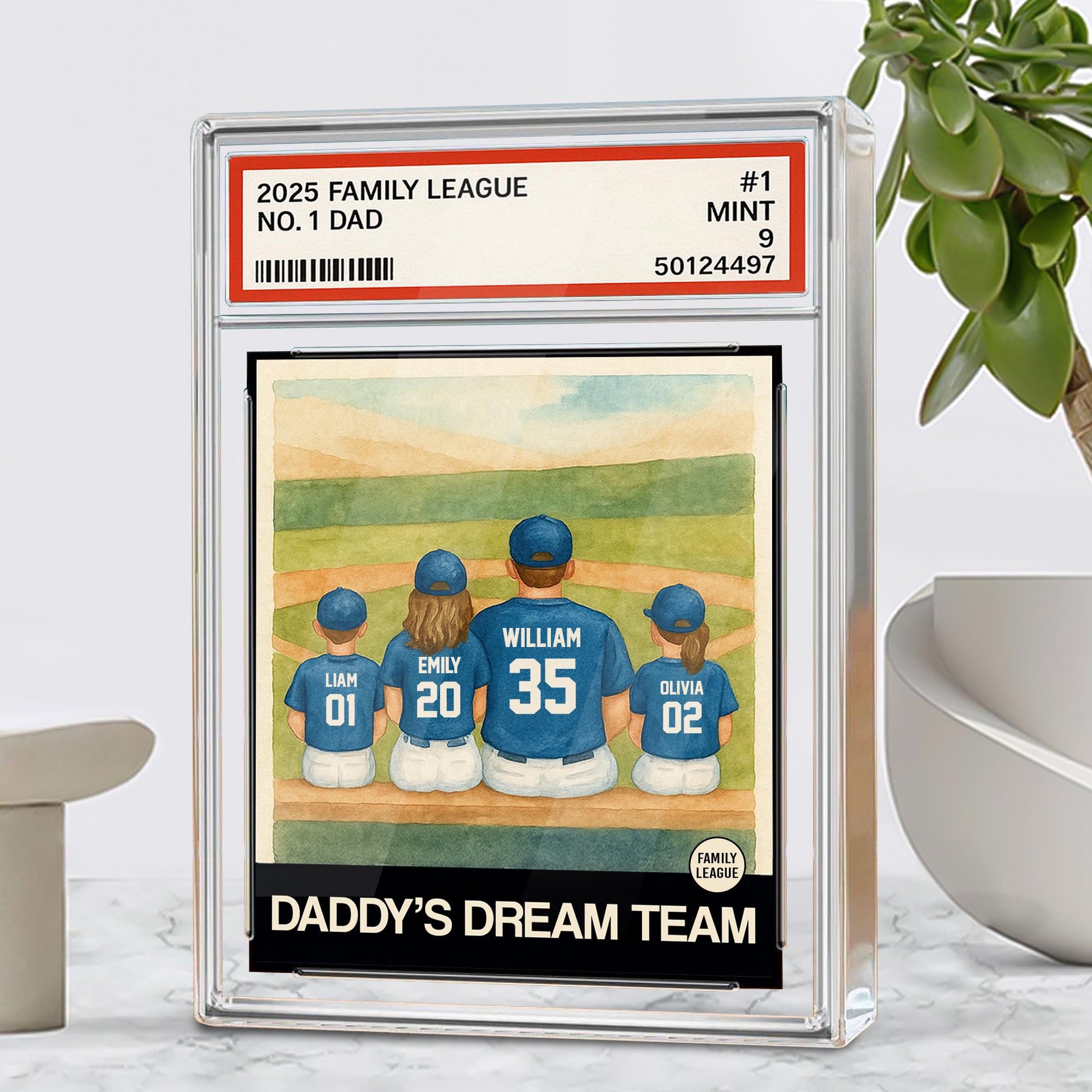 Baseball No. 1 Dad Man And Kids Trading Card Style Personalized Acrylic Block, Father's Day Gift For Husband, Dad, Daddy's Dream Team Plaque