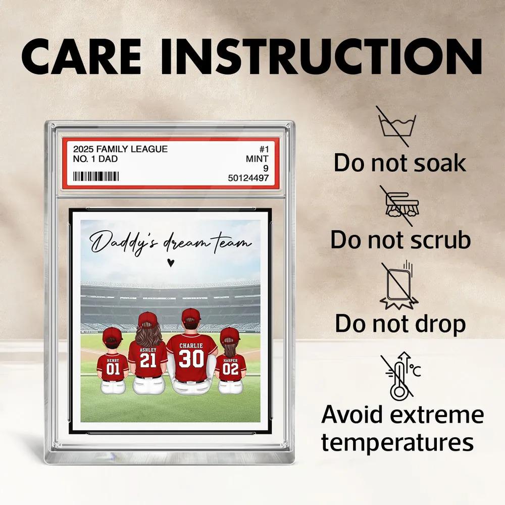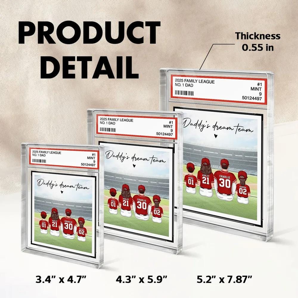 Baseball No. 1 Dad Man & Kids Sitting Trading Card Style Personalized Acrylic Block Plaque, Fathers Day Gifts for Husband, Dad, Papa, Father