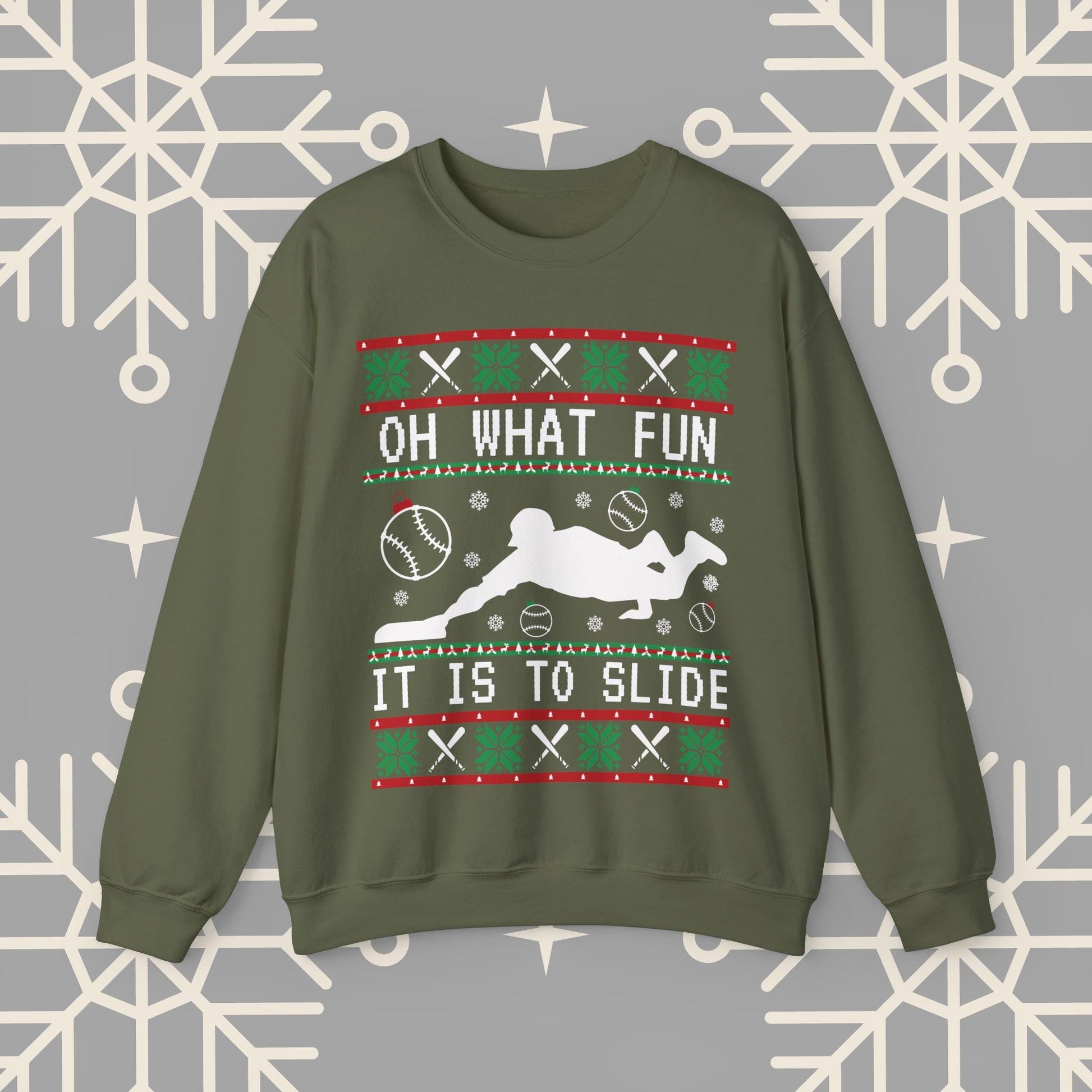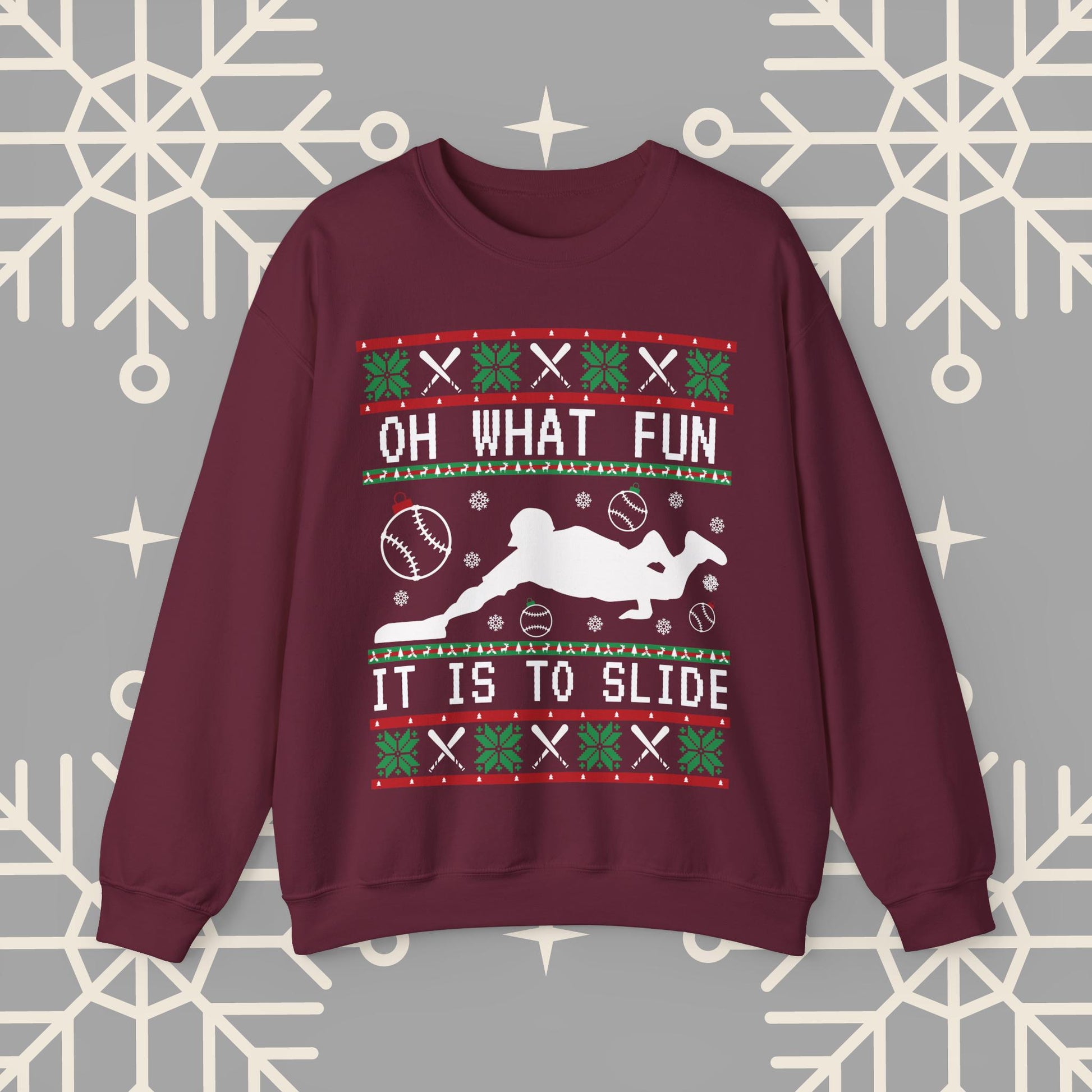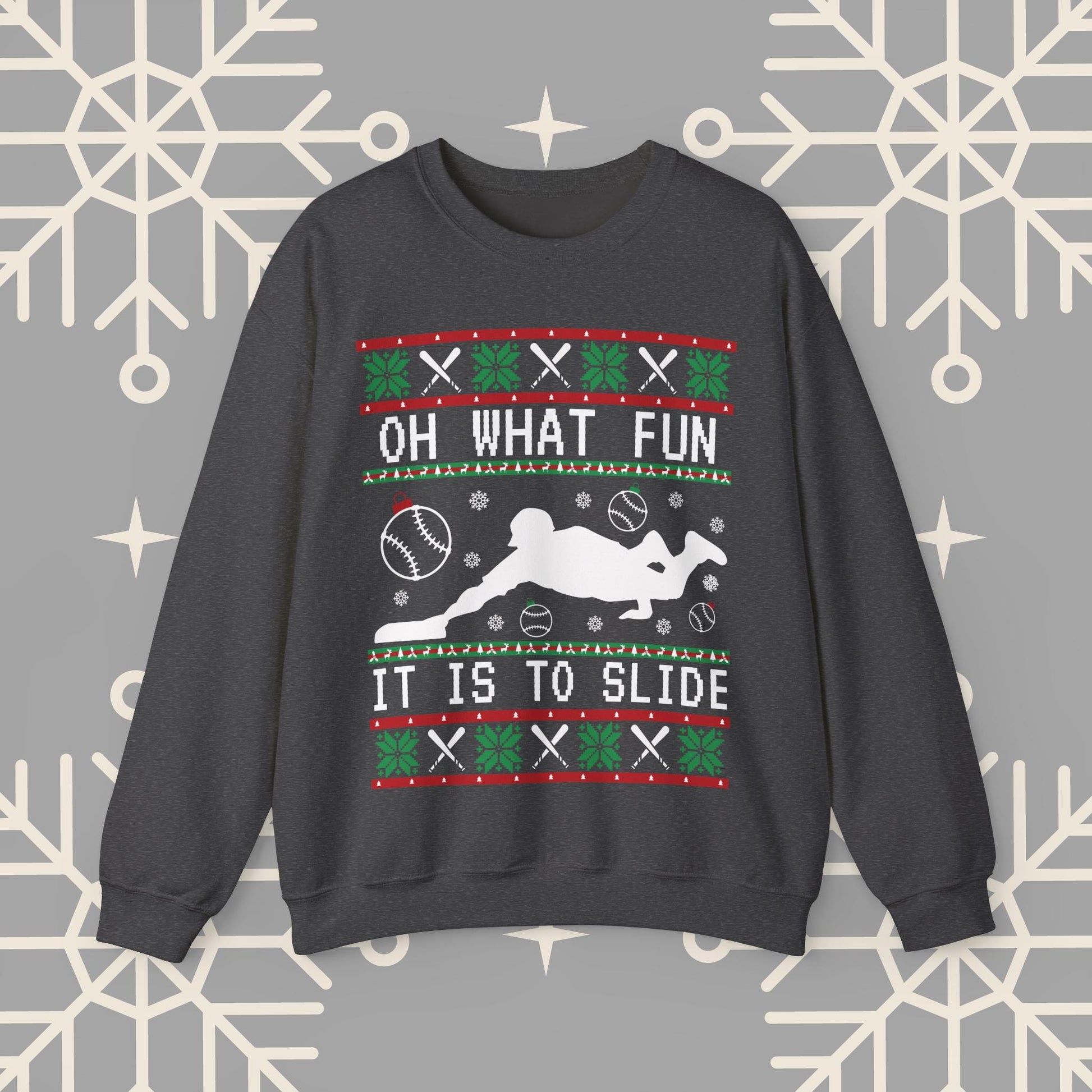 Baseball Ugly Christmas , Oh What Fun It Is To Slide Funny Baseball Sweatshirt, Christmas Party, Gift for Baseball Player