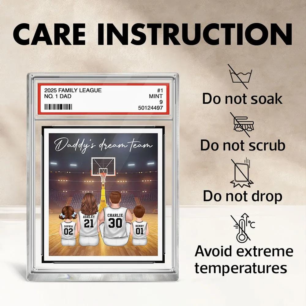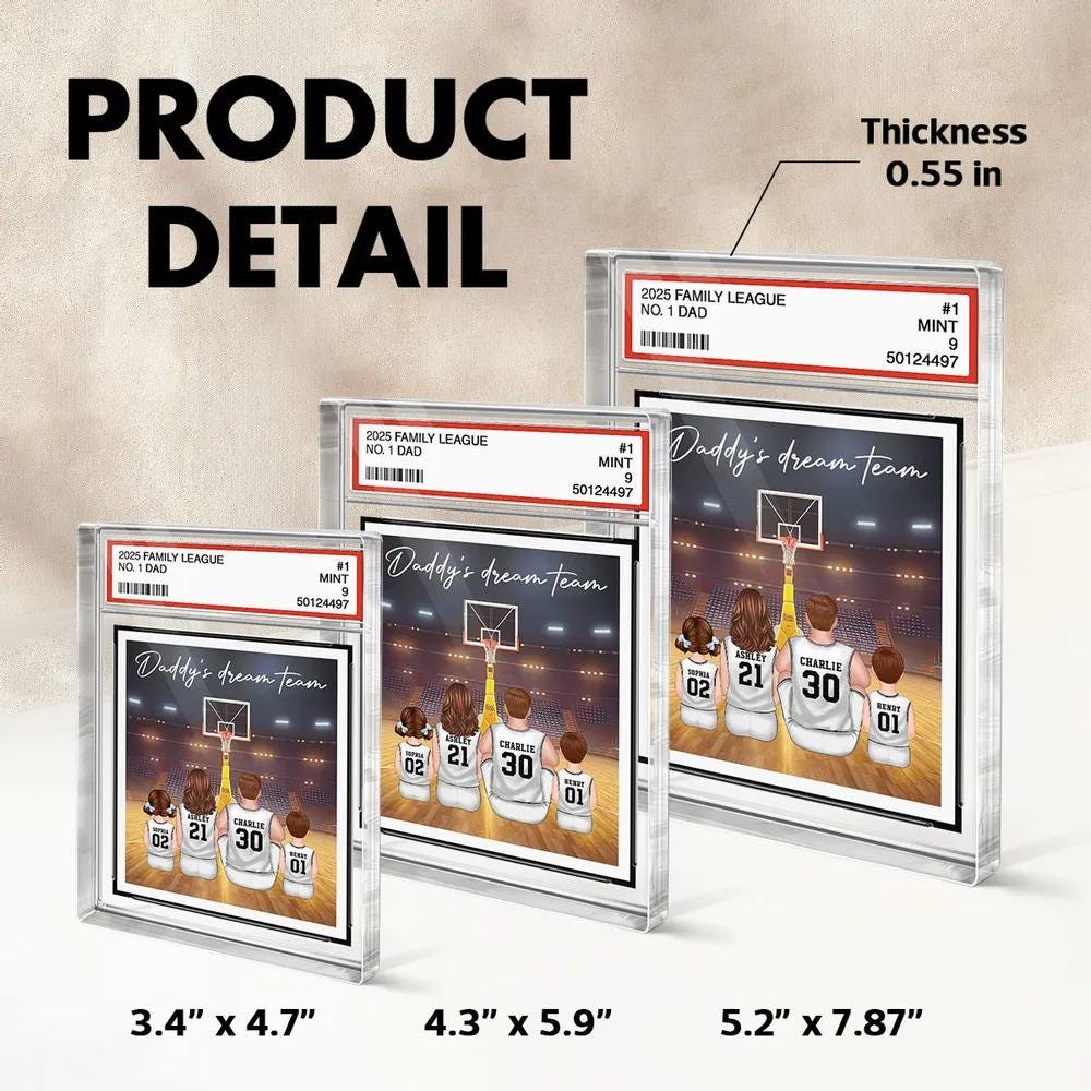Basketball Daddy's Dream Team No. 1 Dad Man & Kids Sitting Trading Card Style Personalized Acrylic Block Plaque, Father Day Gift for Husband