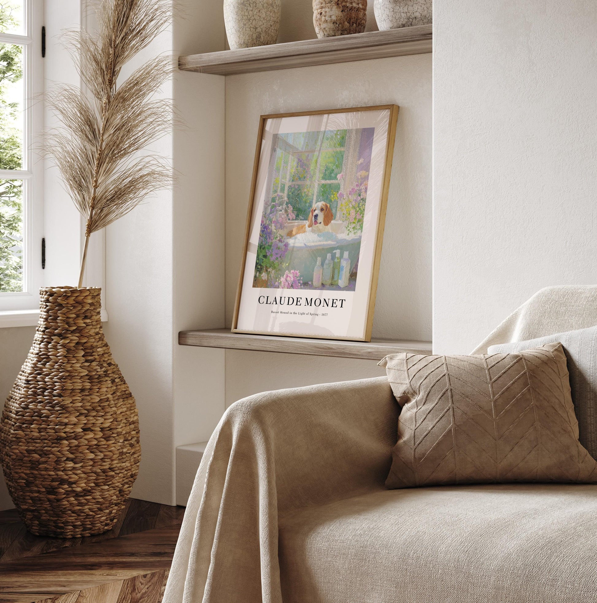 Basset Hound in Bathtub Poster: Monet Style Bathroom Print