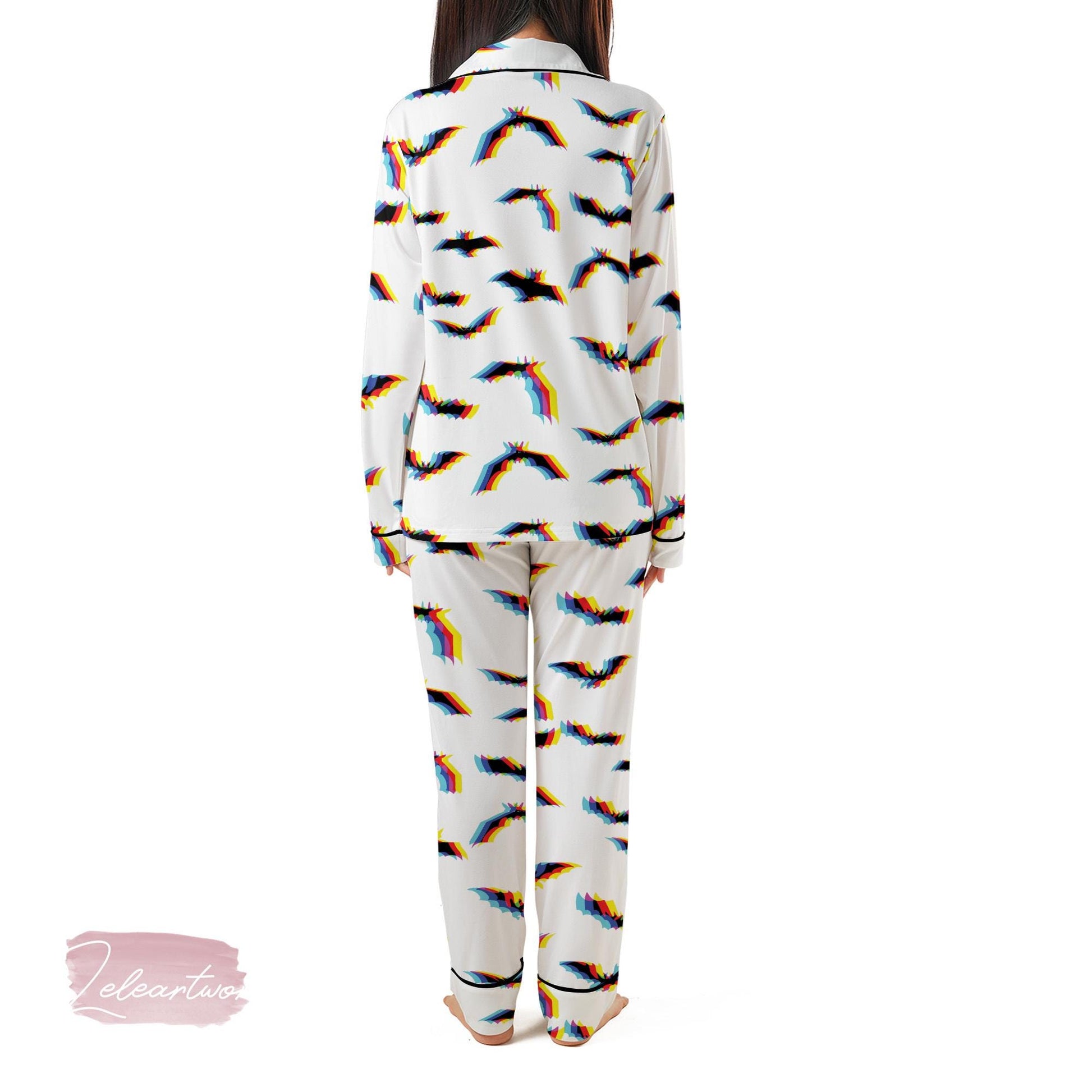 Bat Glitch Color Set – Trippy Rainbow Bat Print Pajama Shorts & Shirt