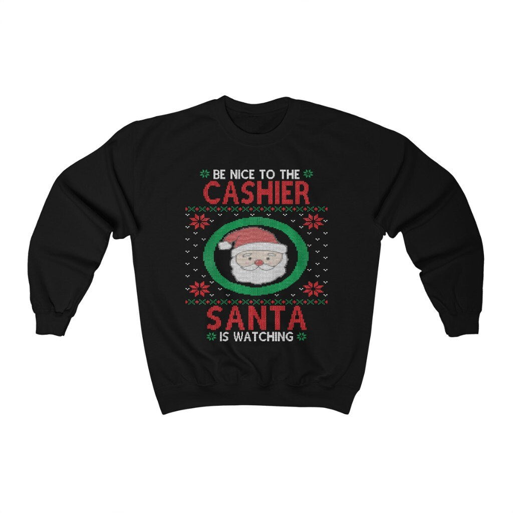 Be Nice To The Cashier Assistant Santa Is Watching, Retail Worker Christmas Sweatshirt, Cashier Shirt, Essential Worker Gift