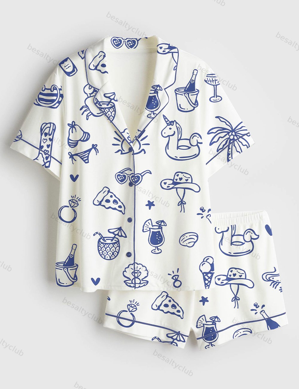 Beach Bachelorette Coastal Wedding Short Sleeve Satin Pajama Set