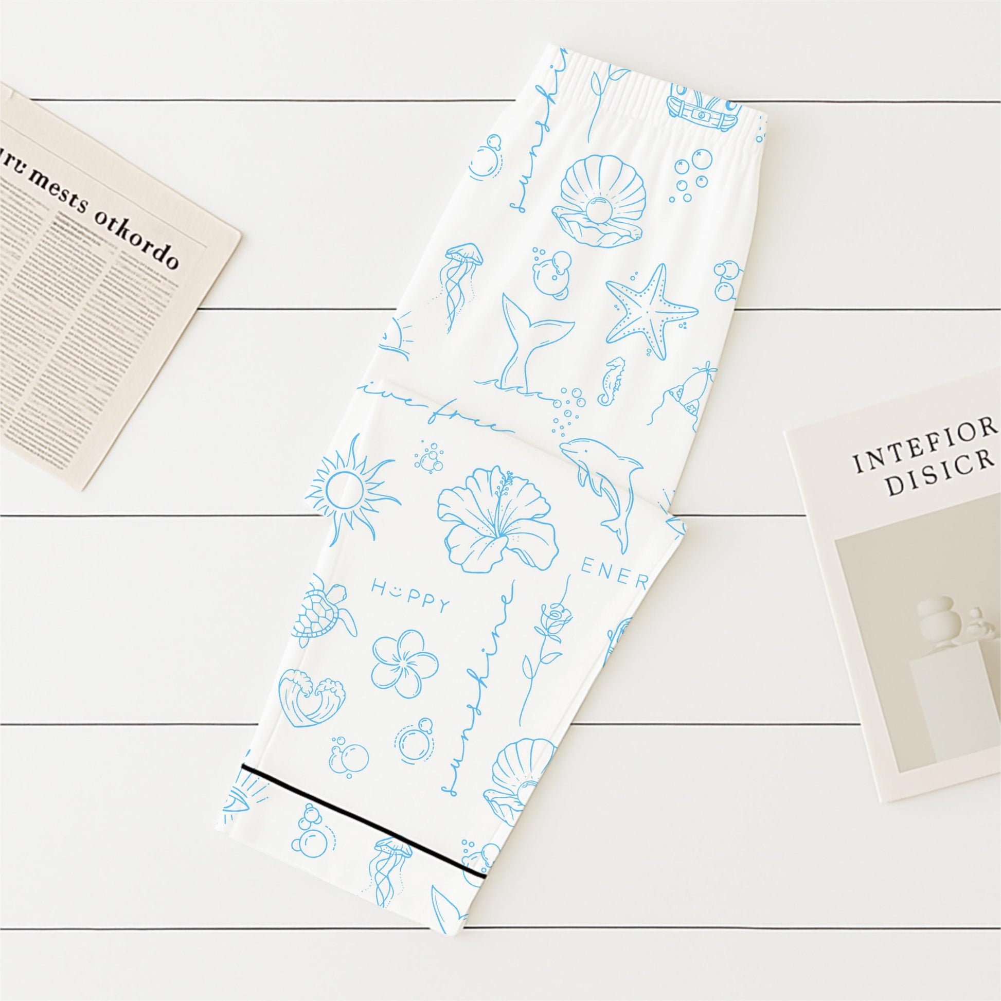 Beach Pattern Pajamas Set, Marine Life Sleepwear, Sea Theme Homewear, Summer Vacation Gift, Sunshine Pyjamas, Halloween Gift