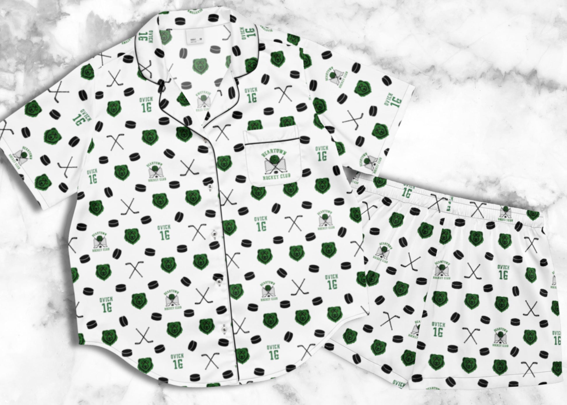 Beartown Hockey Club Benji Ovich 16 Short Sleeve Pajama Top or Matching Shorts for Reader Booktok Librarian