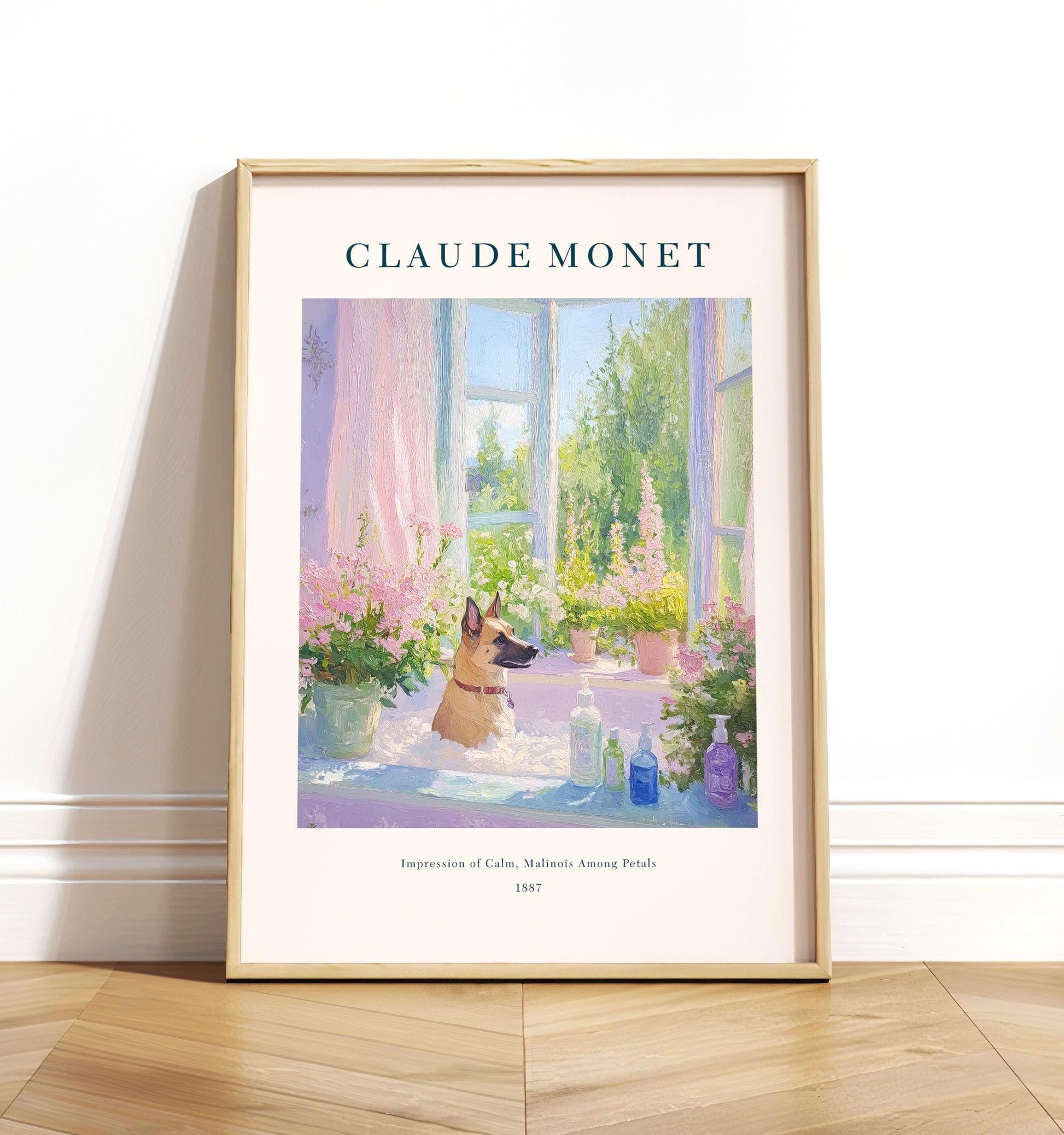 Belgian Malinois Dog in Bathtub Art Print: Monet Style Bathroom Poster