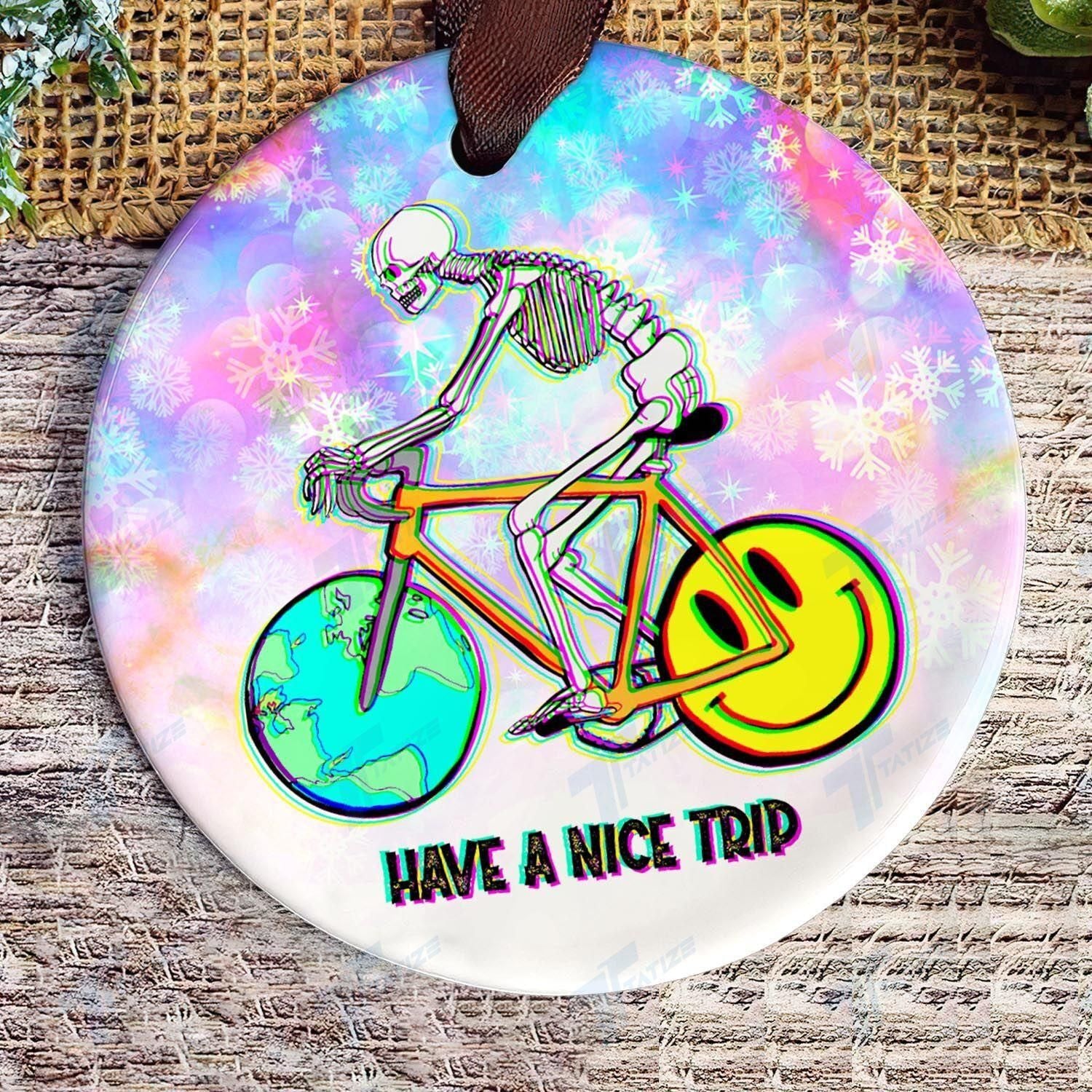 Bicycle Skull Have A Nice Trip Circle Ornament, Christmas Ornament Gift, Christmas Gift, Christmas Decoration