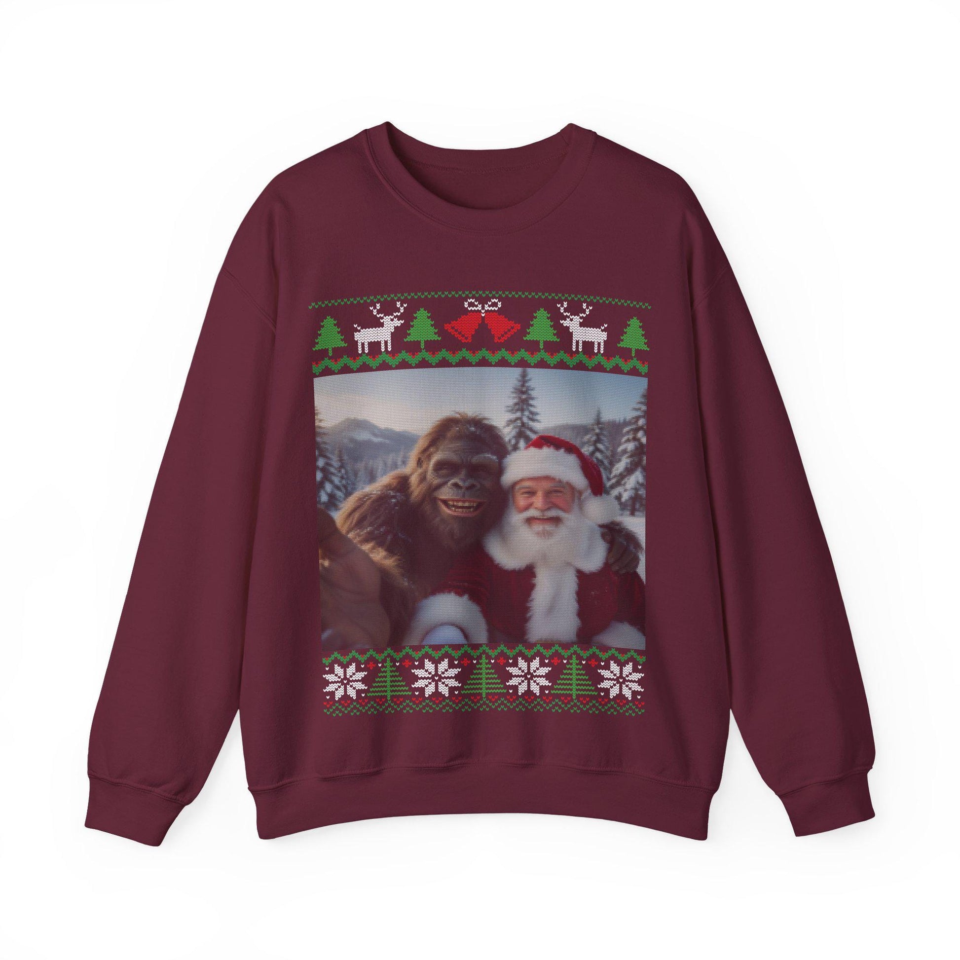 Bigfoot and Santa Taking Selfie Ugly Christmas Sweatshirt 100% Cotton : Sasquatch Holiday Party Shirt