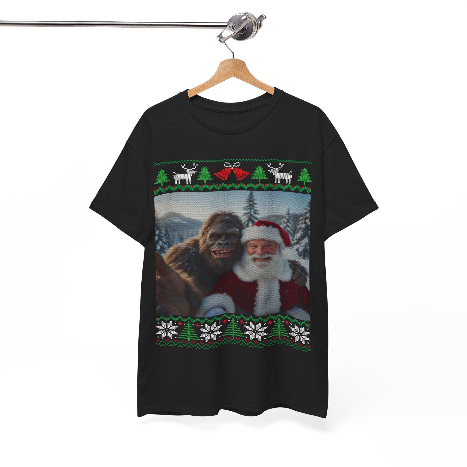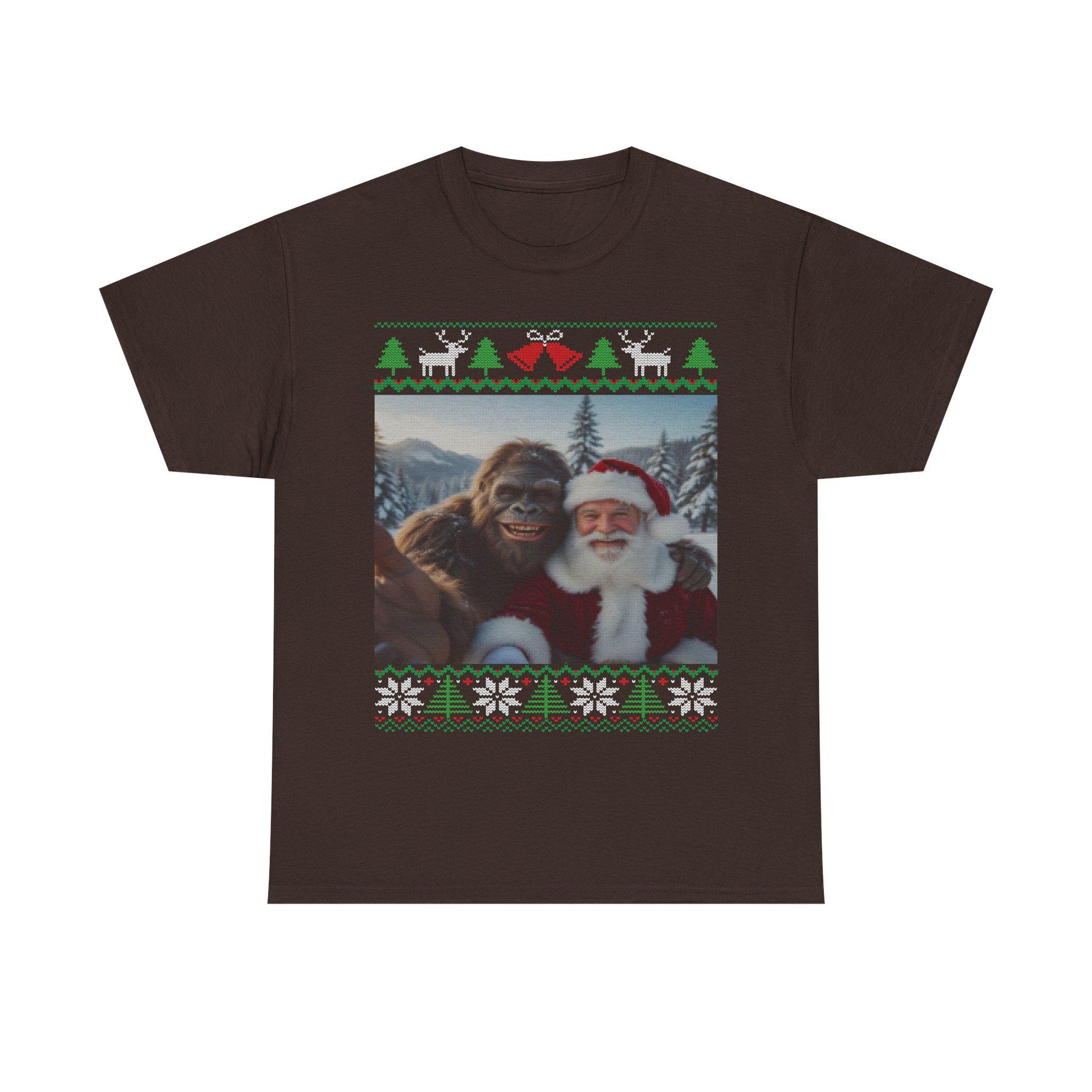 Bigfoot Taking a Selfie With Santa Ugly Christmas Party Design T-shirt for Men and Women Who Love Sasquatch Tee Shirt