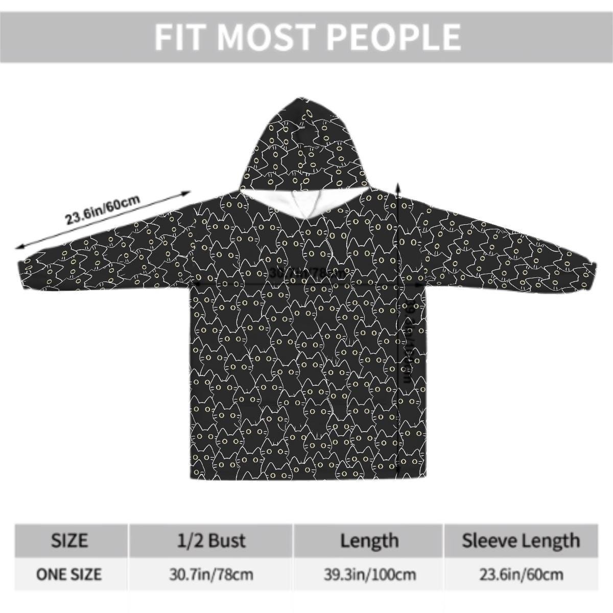 Black Cat Blanket Hoodie, Boho Witchy Black Hooded Jumper, Kawaii Anime Cute Winter Fall Accessory