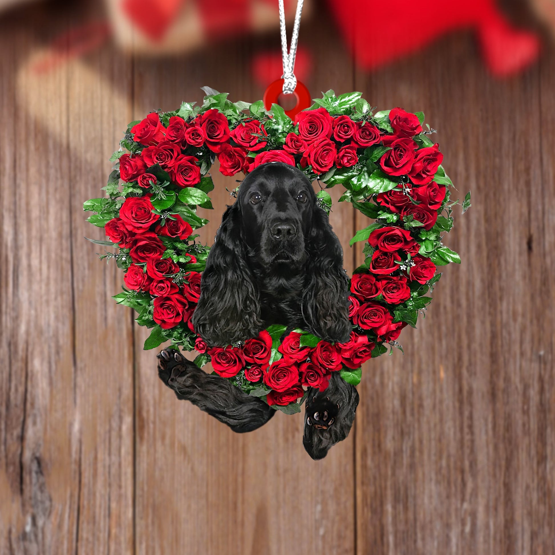 Black Cocker Spaniel-Heart Wreath Two Sides Christmas Plastic Hanging Ornament, Christmas Ornament Gift, Christmas Gift, Christmas Decoration