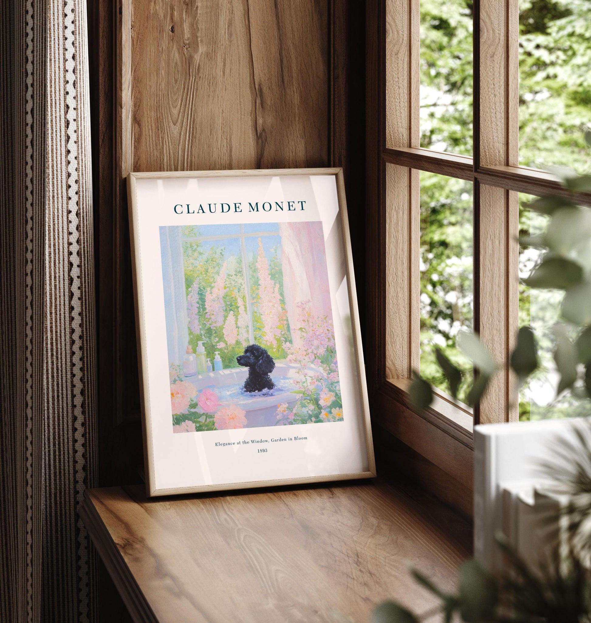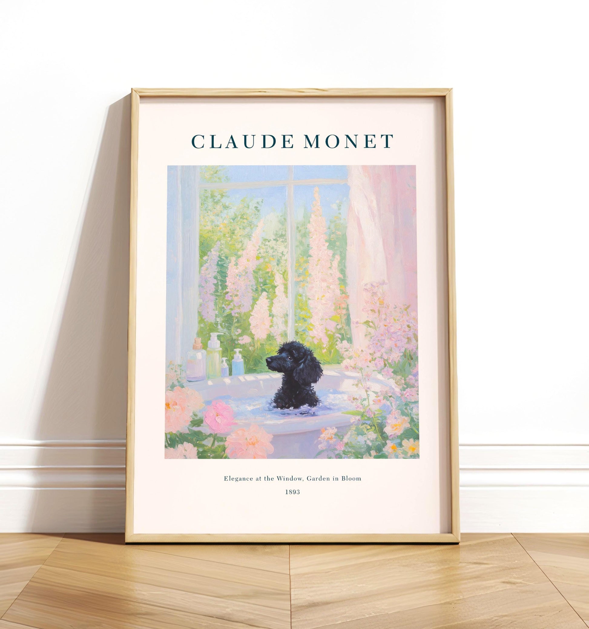 Black Poodle in Bathtub Art Print: Monet Style French Bathroom Decor