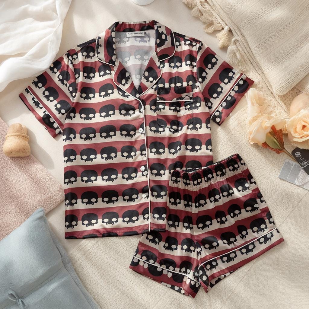 Black Skull Satin Pajamas Set, Halloween Pajamas Set, Skull Pajamas, Mystical Pajamas, Vintage Halloween Pajamas, Family Matching Pajamas