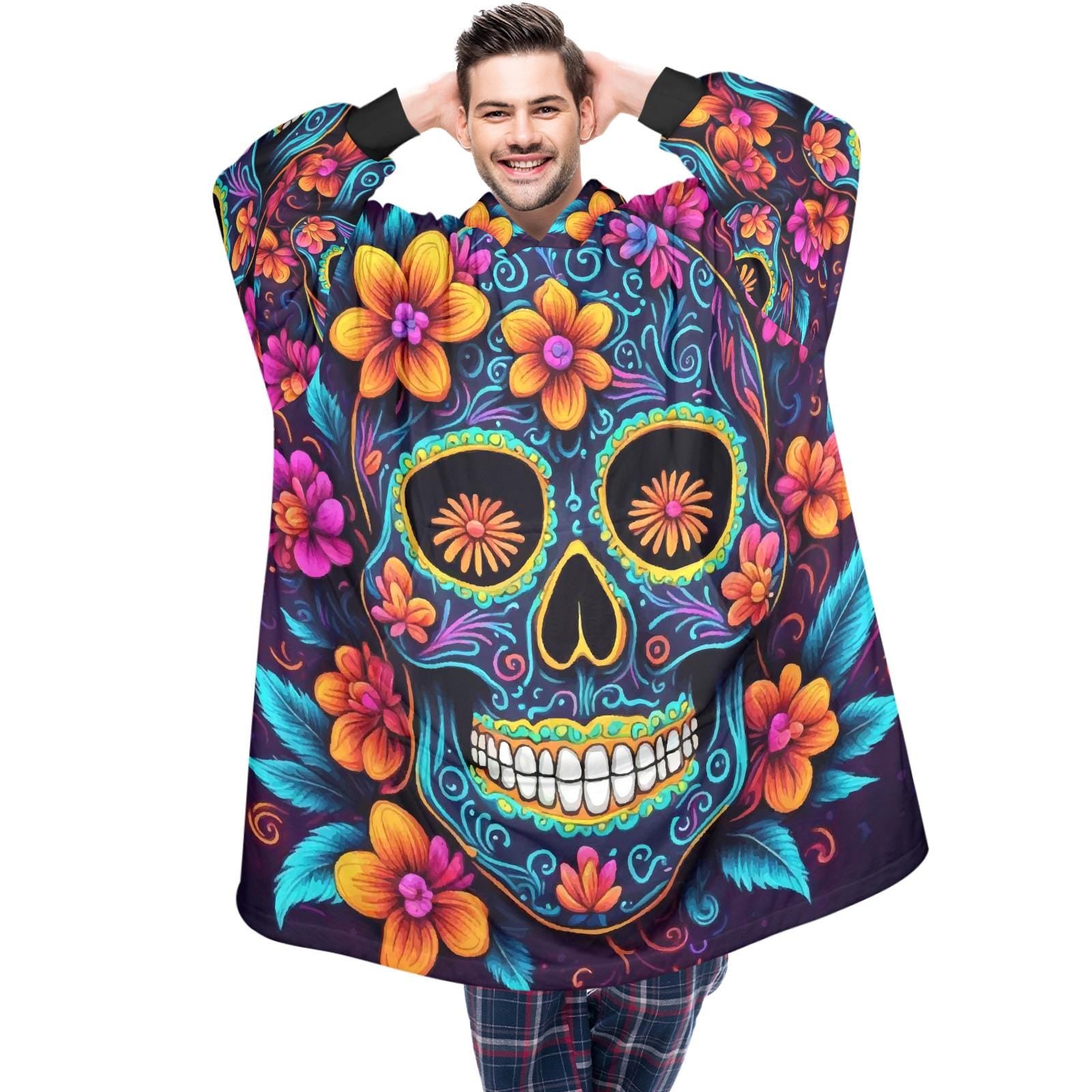 Blanket Hoodie personalized blankets hoodie that is a blanket Día De Los Muertos Chicano Day of the Dead Blanket Chicanos Sugar Skull