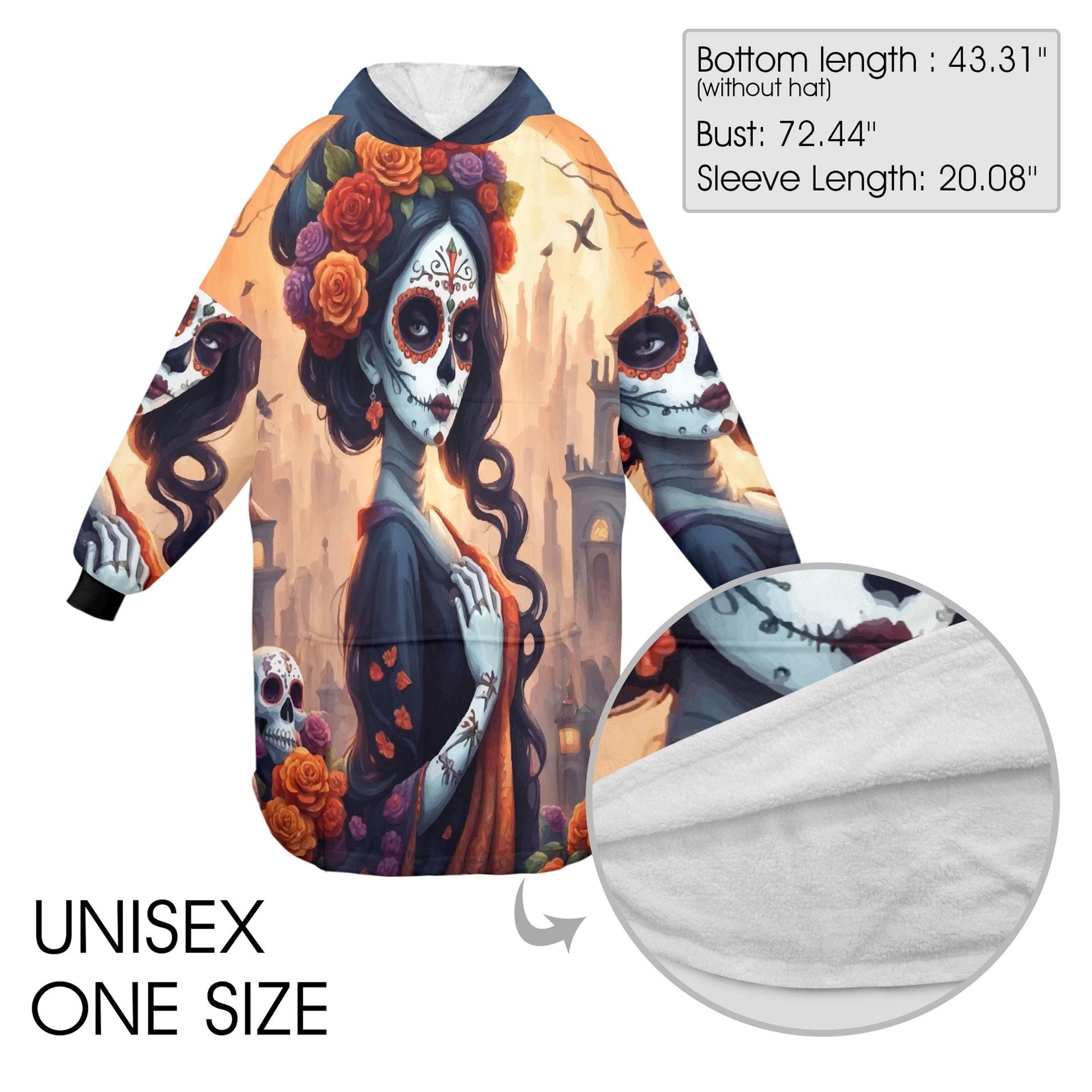 Blanket Hoodie personalized blankets hoodie that is a blanket Mexico Chicano Día De Los Muertos Halloween Horror