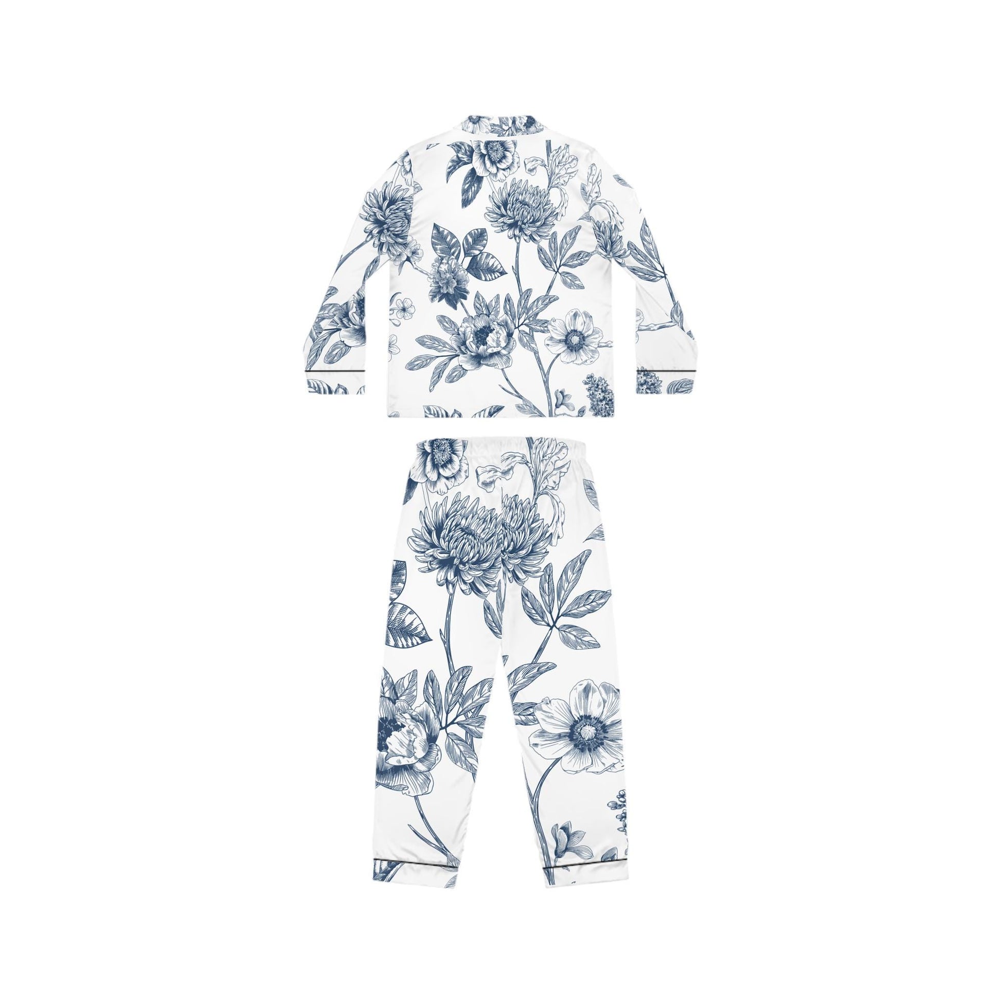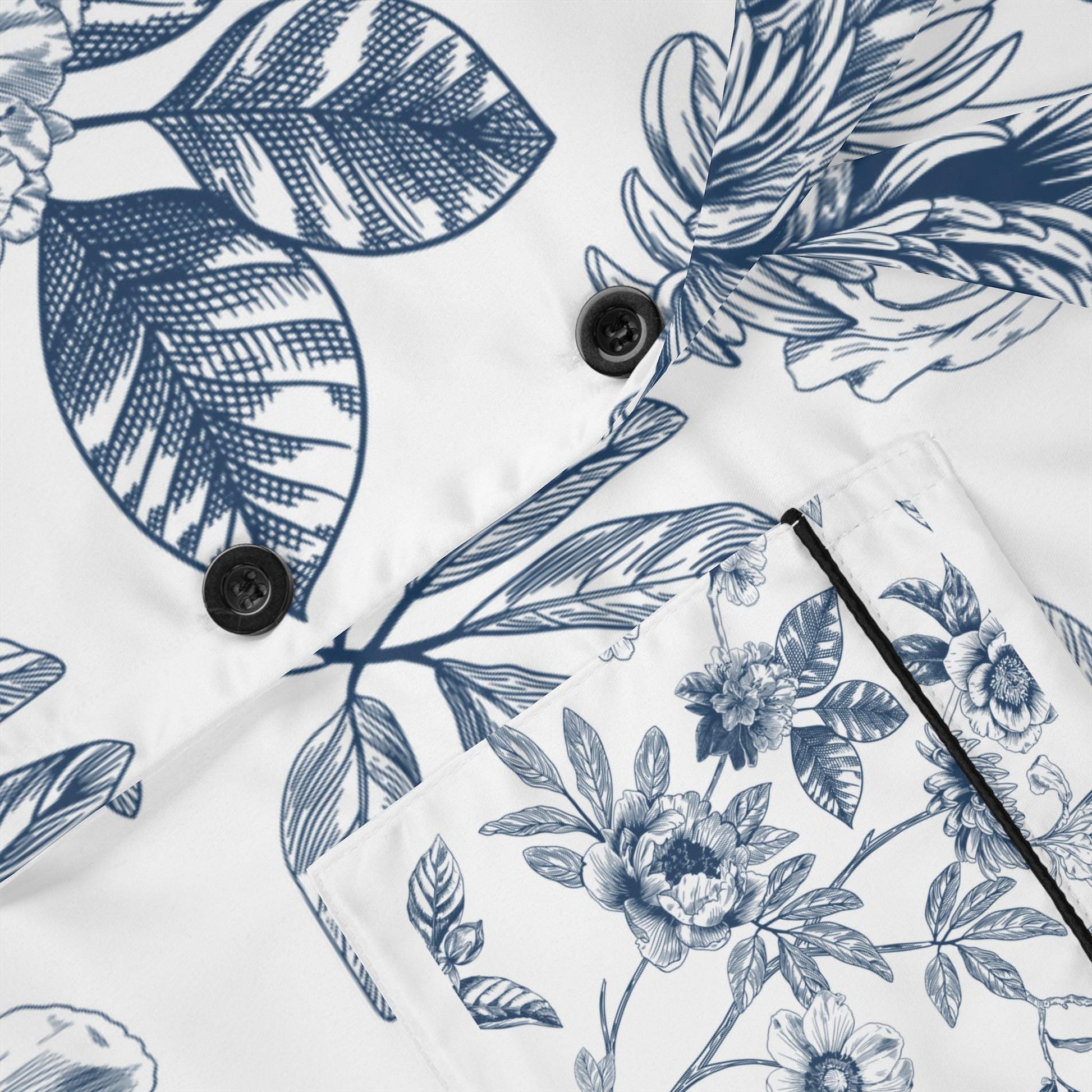 Blue Floral Satin Pajamas for Women, Elegant Sleepwear Set, Luxury PJ Set, Soft Lounge Pajamas, Floral Pajama Set, Women's Nightwear