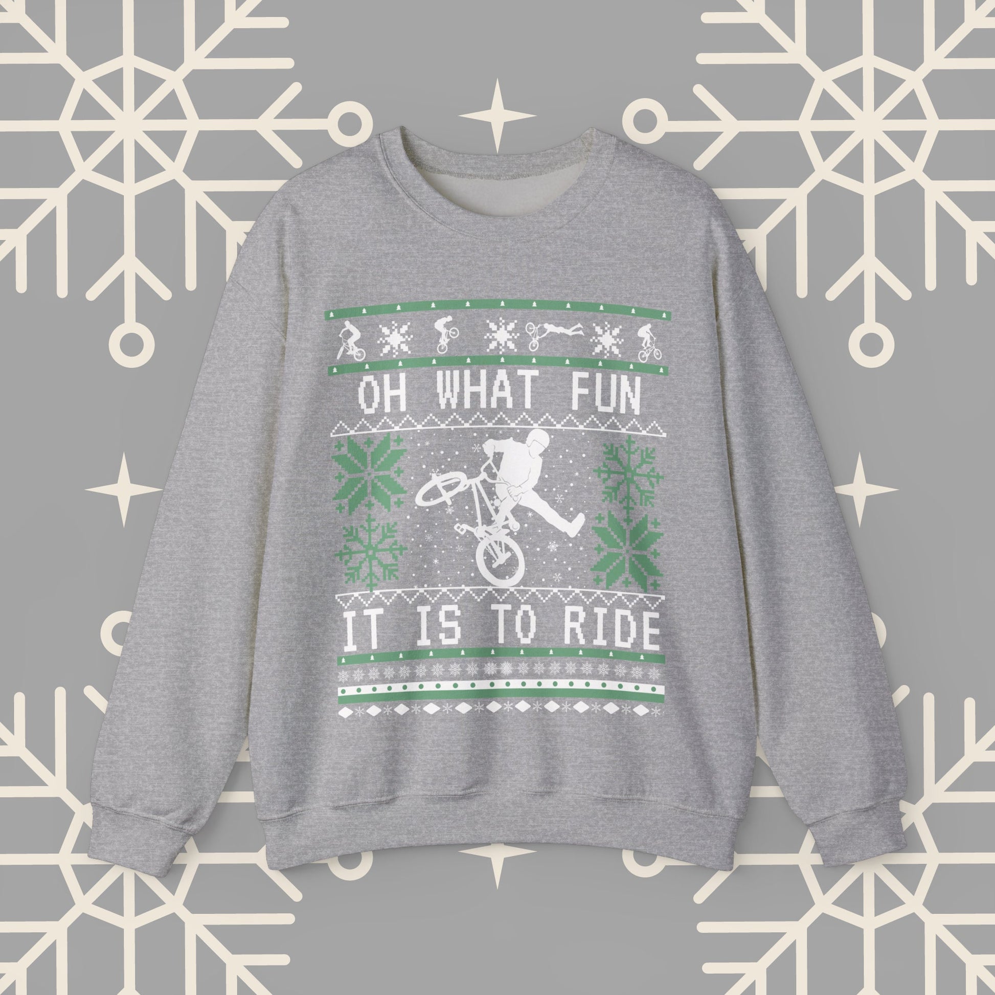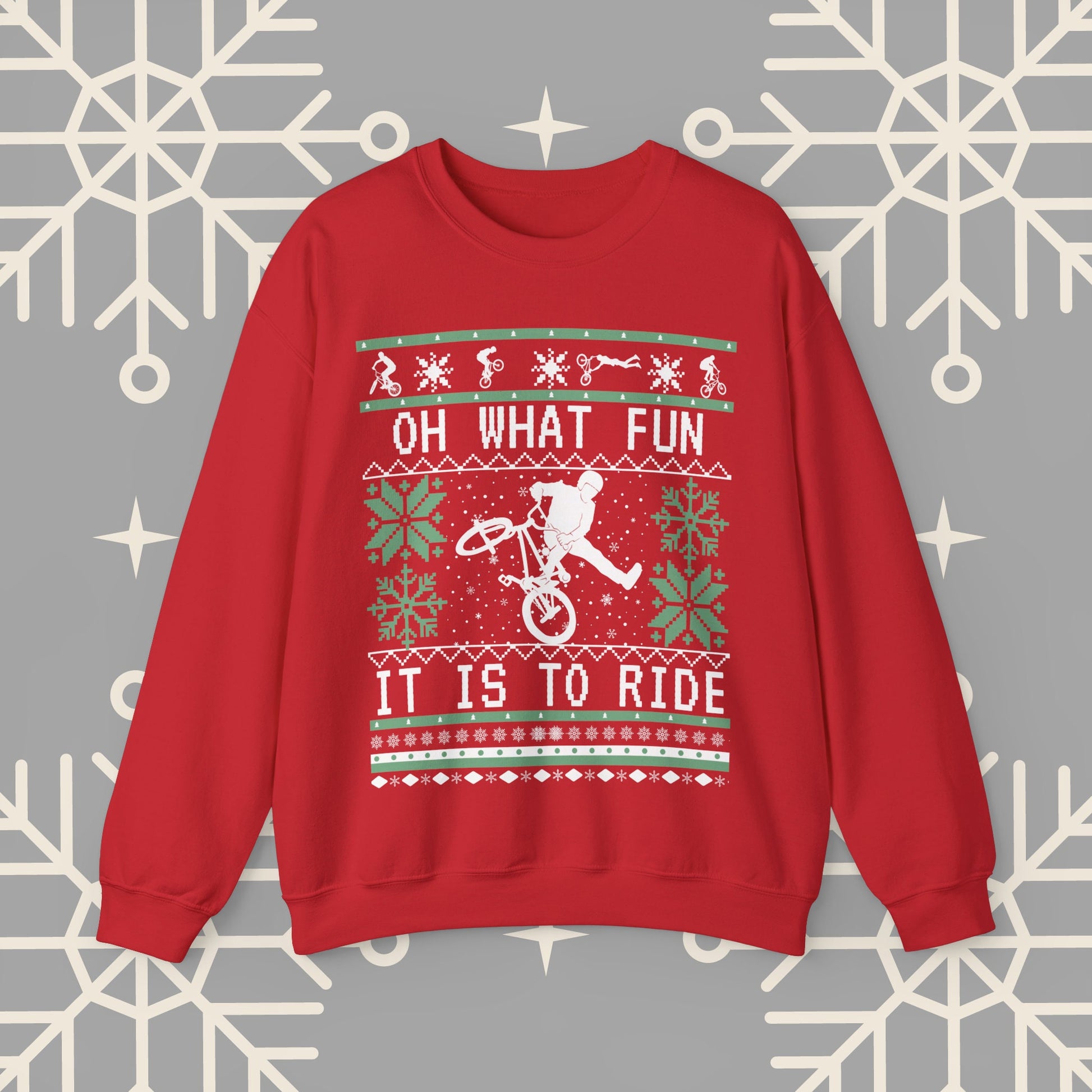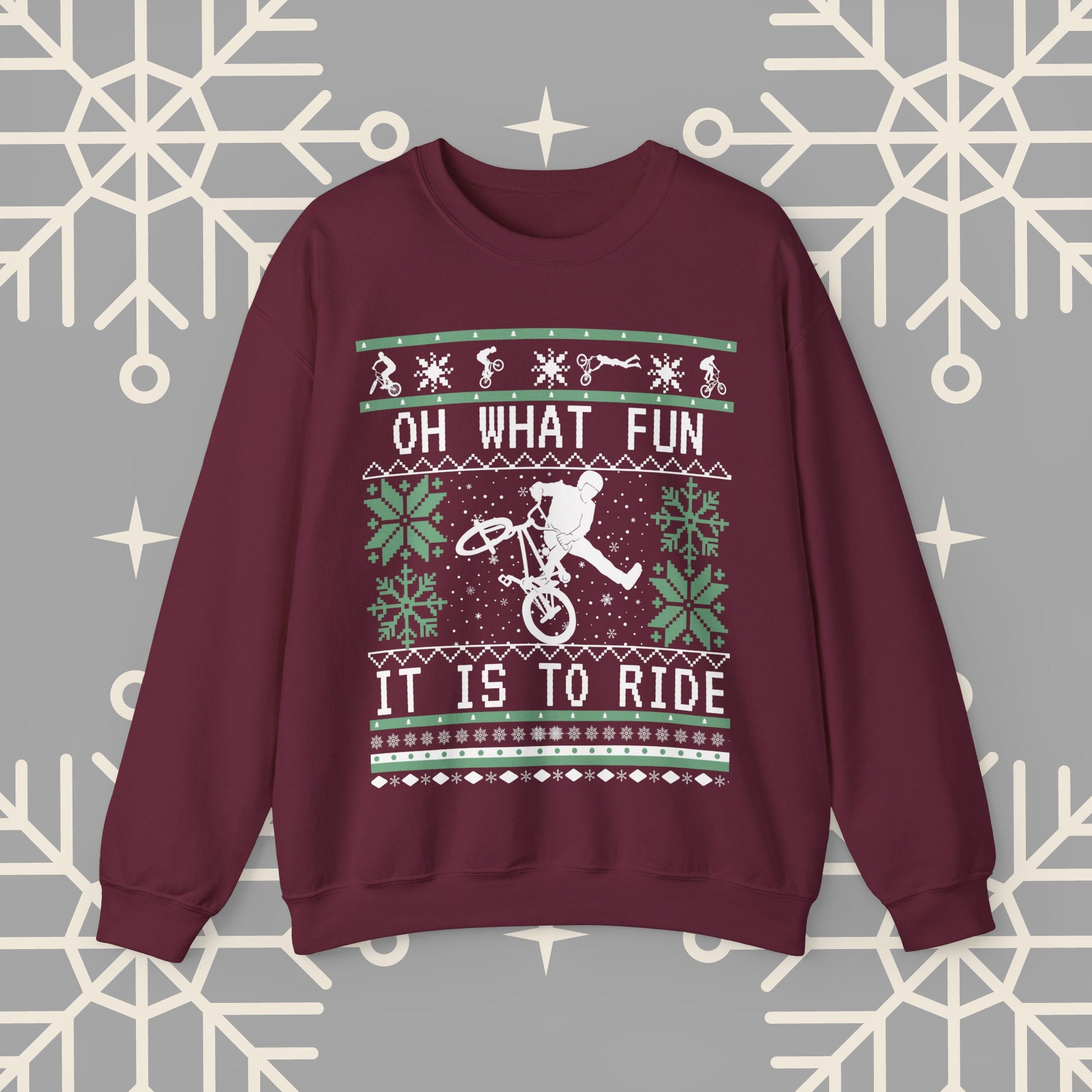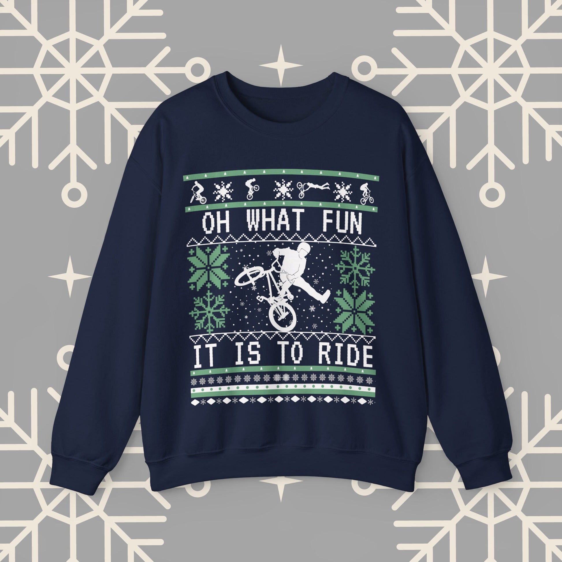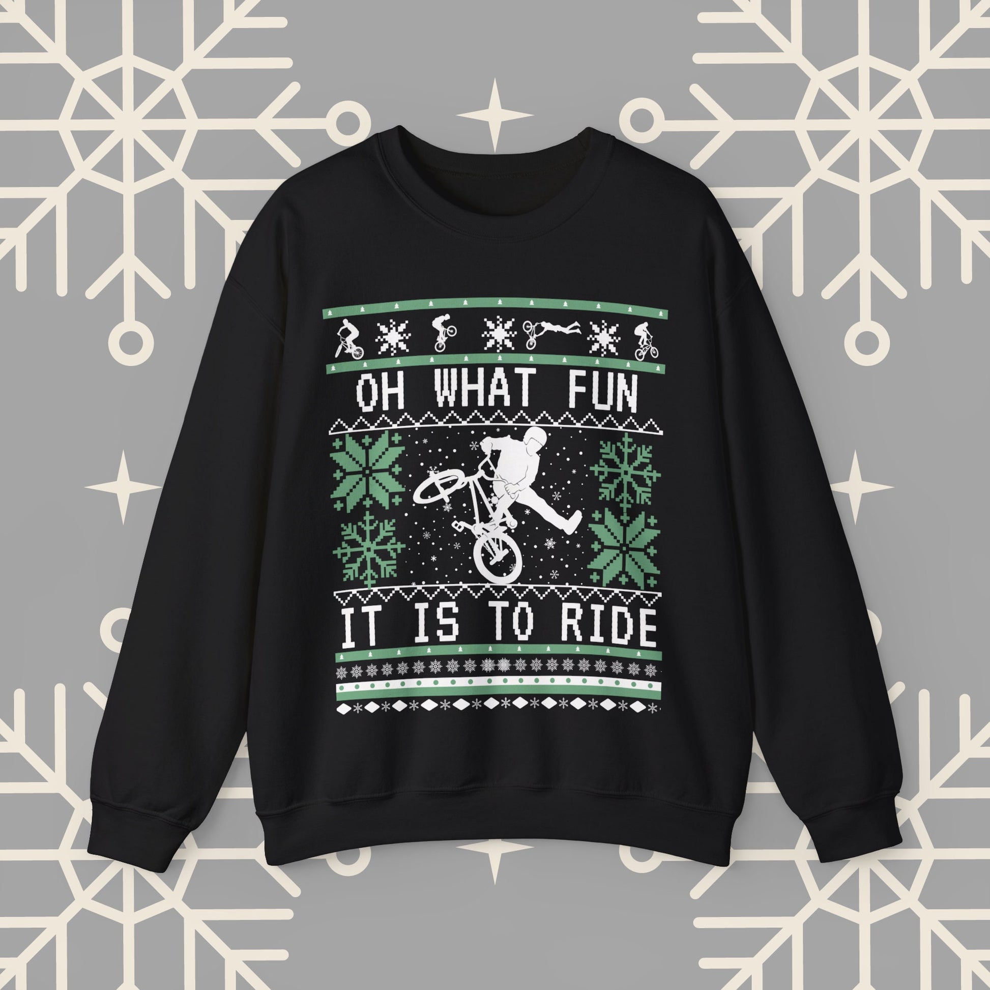 BMX Ugly Christmas , Oh What Fun It Is To Ride, Bike Christmas Sweatshirt, Gift for BMX Biker, Bike Gift for Men