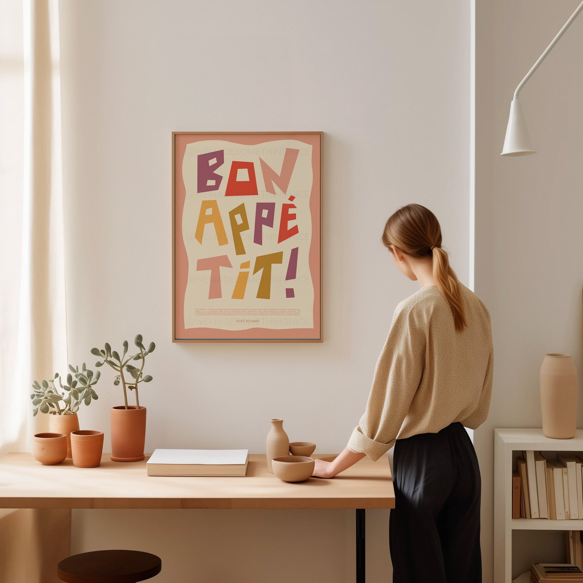 Bon Appetit Poster, Kitchen Poster, Kitchen Decor, Kitchen Art, Home Decor, Coffee Print, Lets Eat Print, Food Poster, Yes Chef