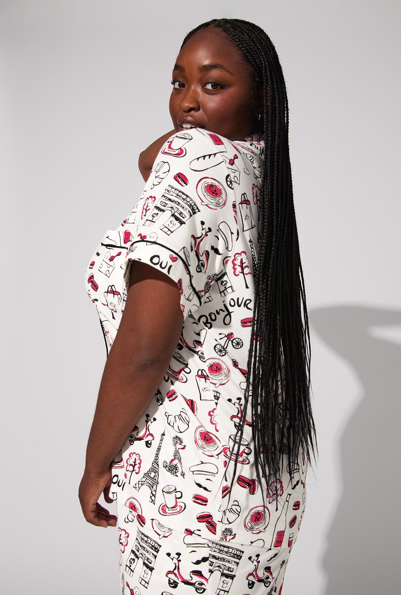 Bonjour Paris Short Sleeve Classic Stretch Jersey Cropped PJ Set