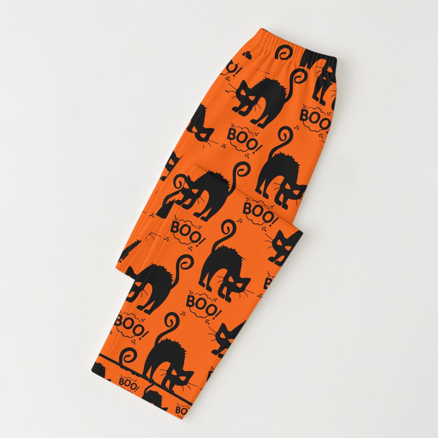 BOO Black Cat Pajamas Set, Orange Halloween Sleepwear, Spooky Season Matching Set, Witchy Cat Pajamas, Trick Or Treat Night Homewear