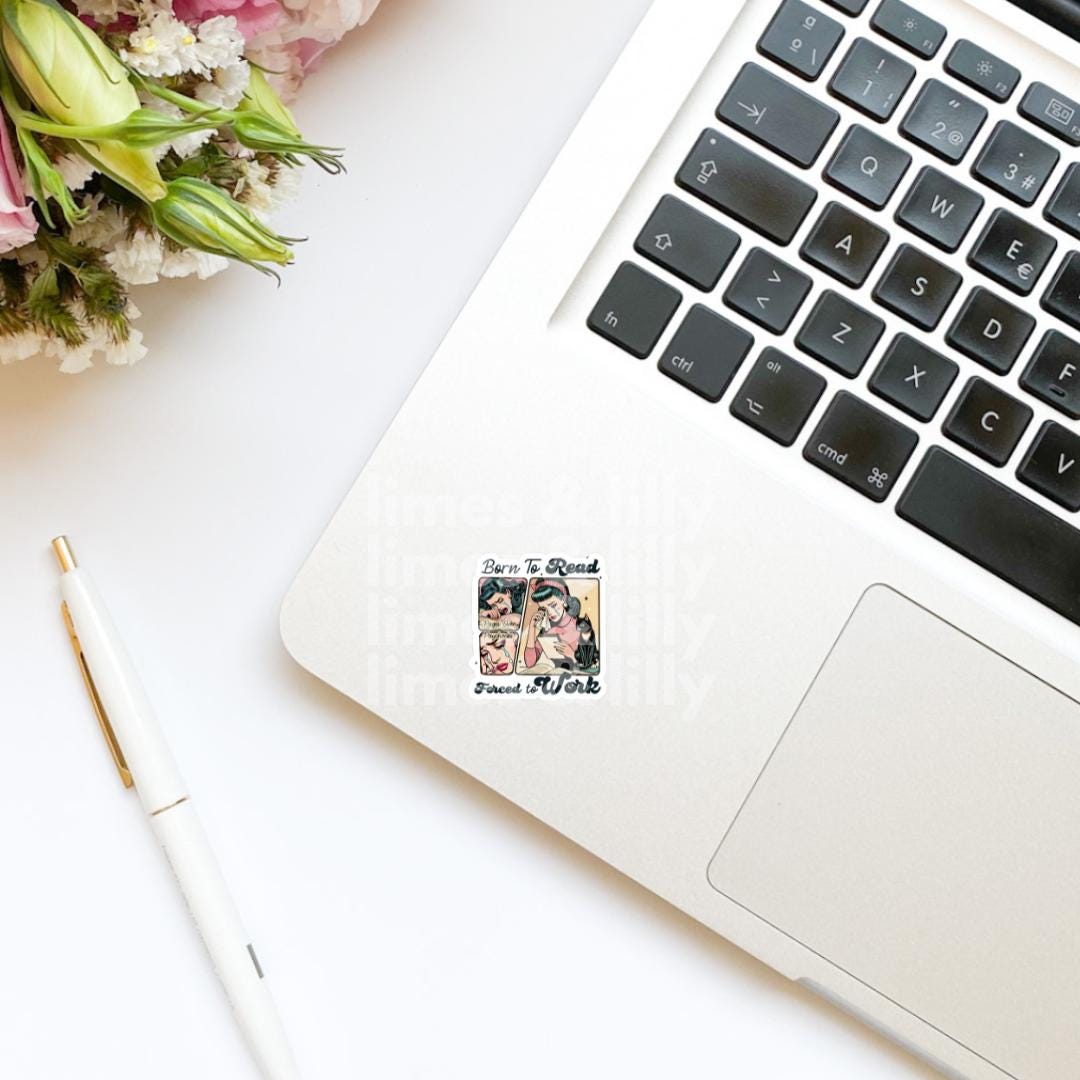 Born Read Forced to Work Cartoon Vinyl Sticker | Kindle Stickers | Bookish Stickers | Mood Reader | Girly