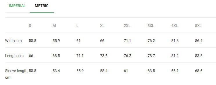 US Size | Chest (Inch) | Chest (Cm) | Length (Inch) | Length (Cm) | Sleeve (Inch) | Sleeve (Cm) |