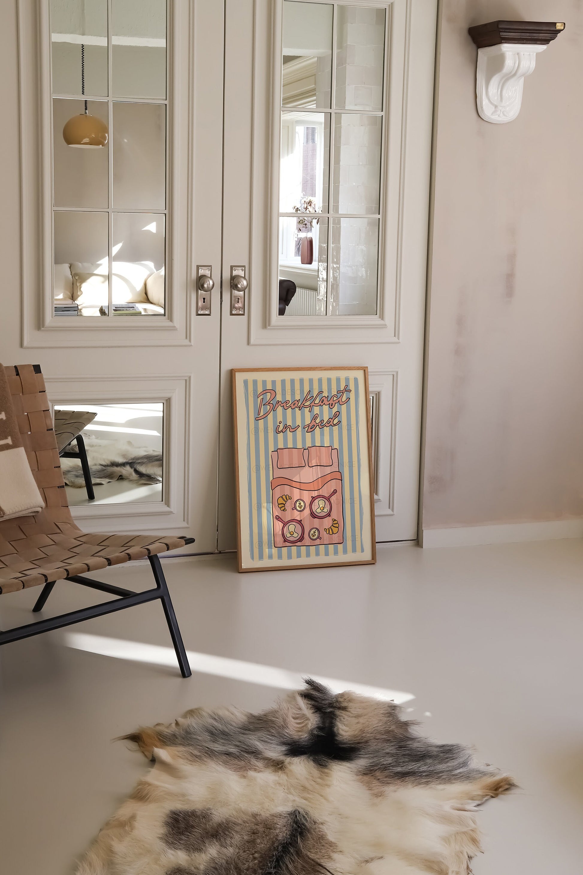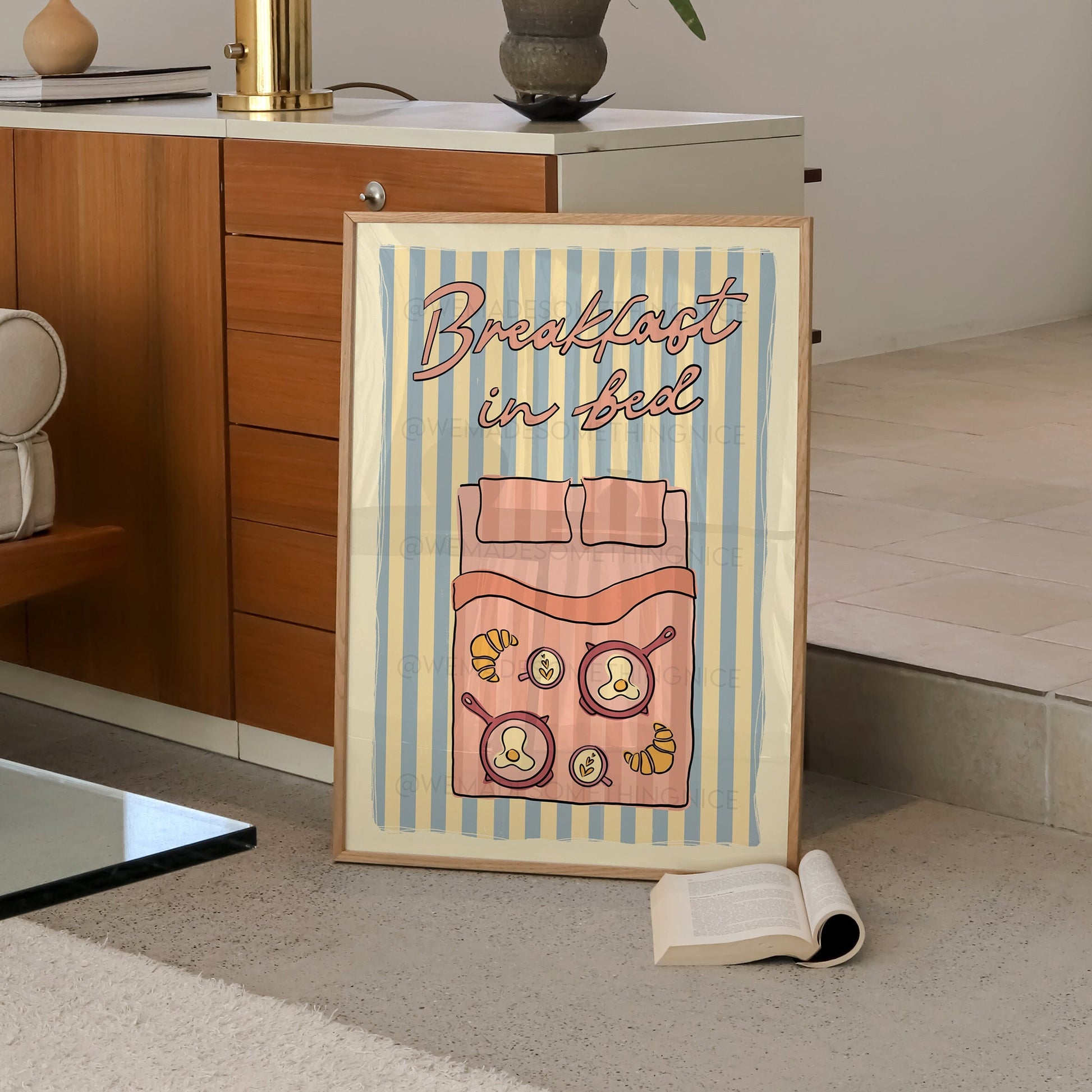 Breakfast In Bed Poster, Coffee Poster, Apartment Decor, Retro Wall Art, Coquette Room Decor, Pink Wall Art, Y2K Room Decor, Retro Wall Art