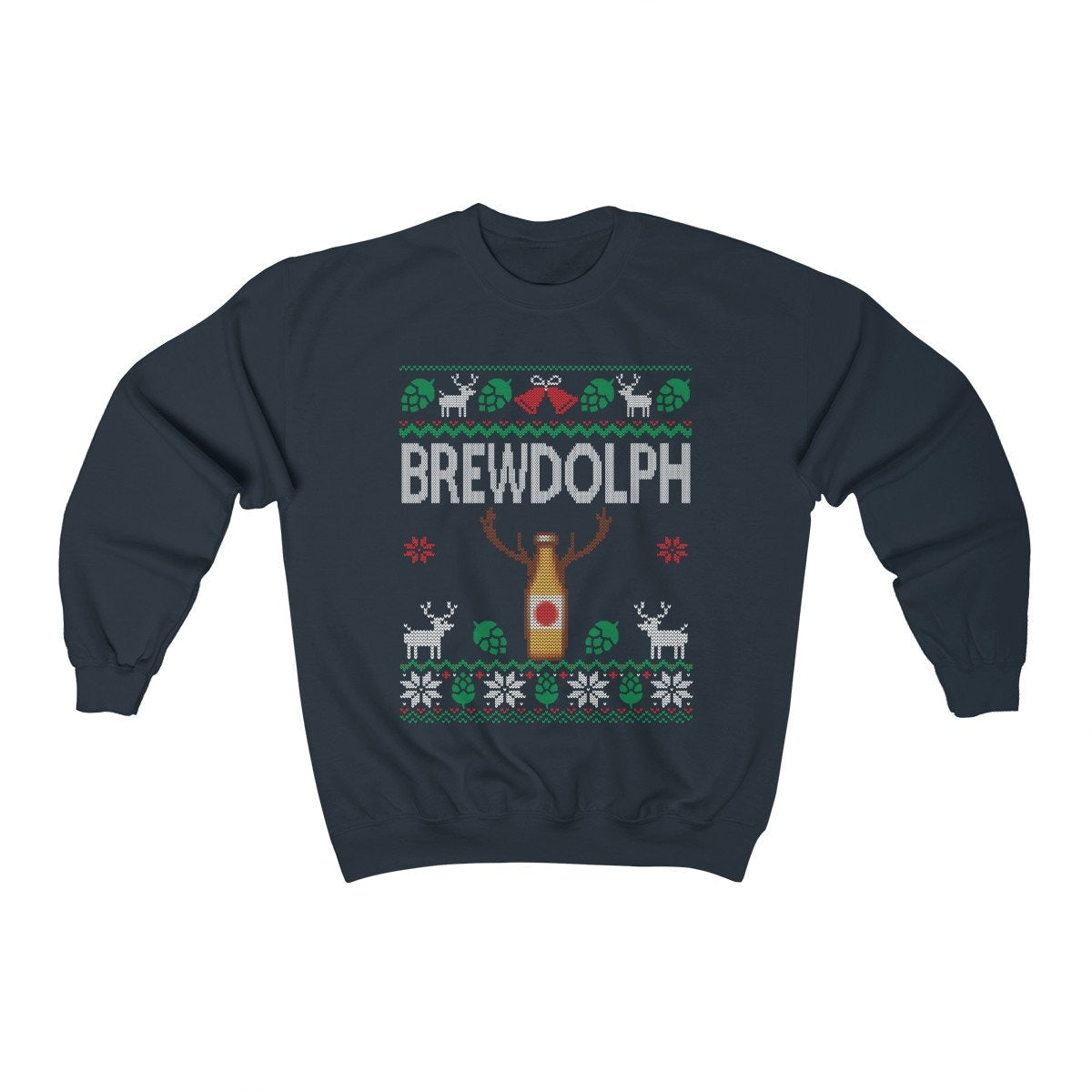Brewdolph Sweatshirt, Ugly Christmas Beer Sweatshirt, Funny Craft Beer Lover Gift, Home Brewing Long Sleeve Unisex Heavy Blend Crewneck