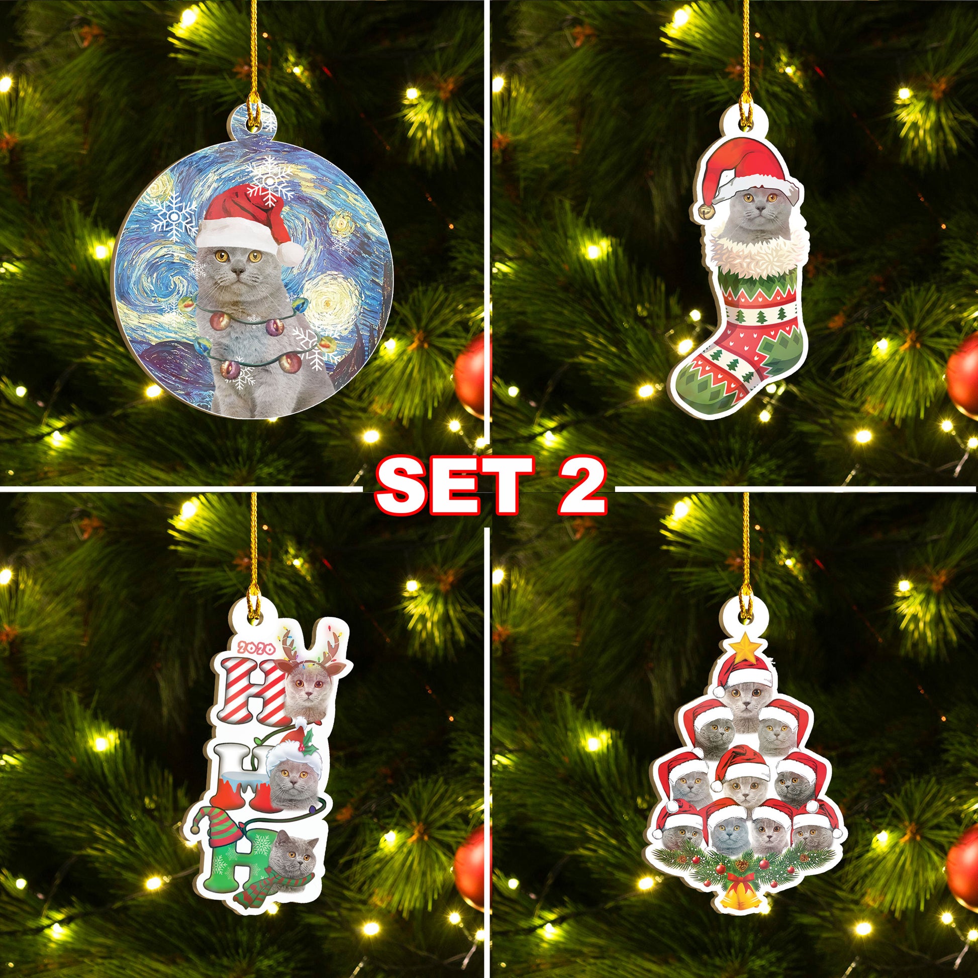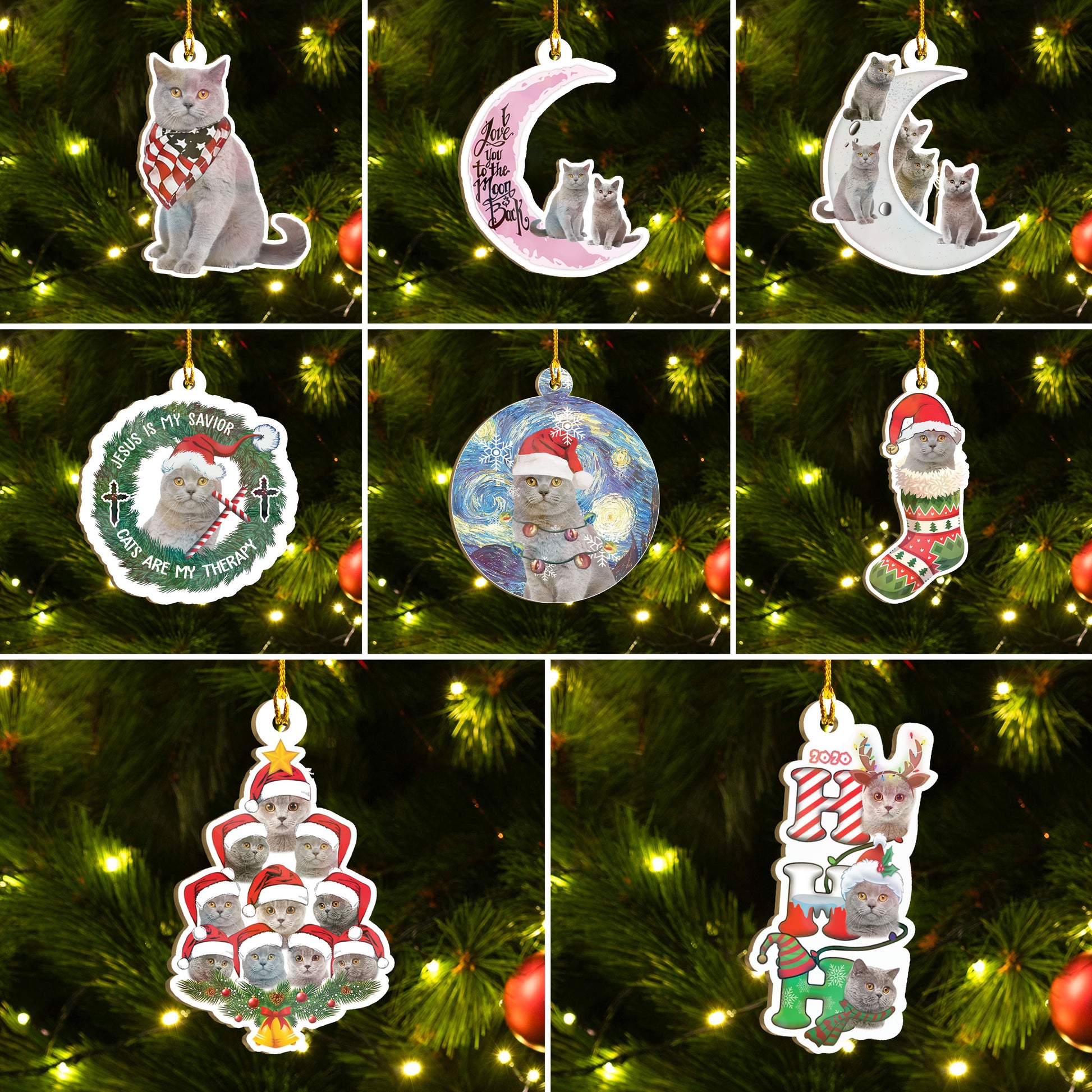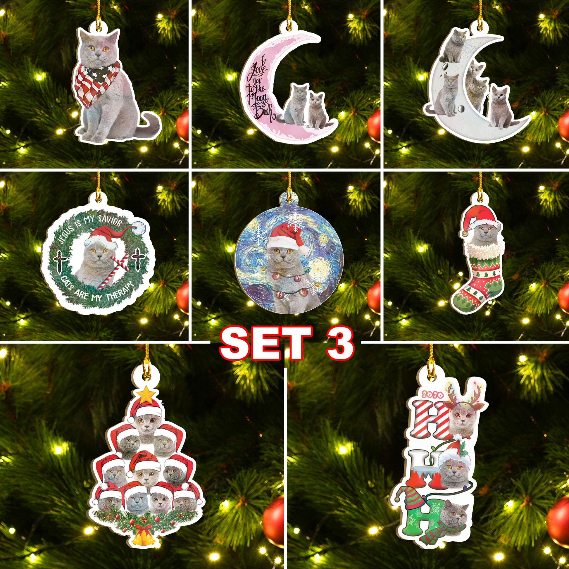British Shorthair Cat Ornaments Set, Meowy Christmas Ornaments Set, Funny Xmas Ornaments Family Gift Idea For Cat Lover
