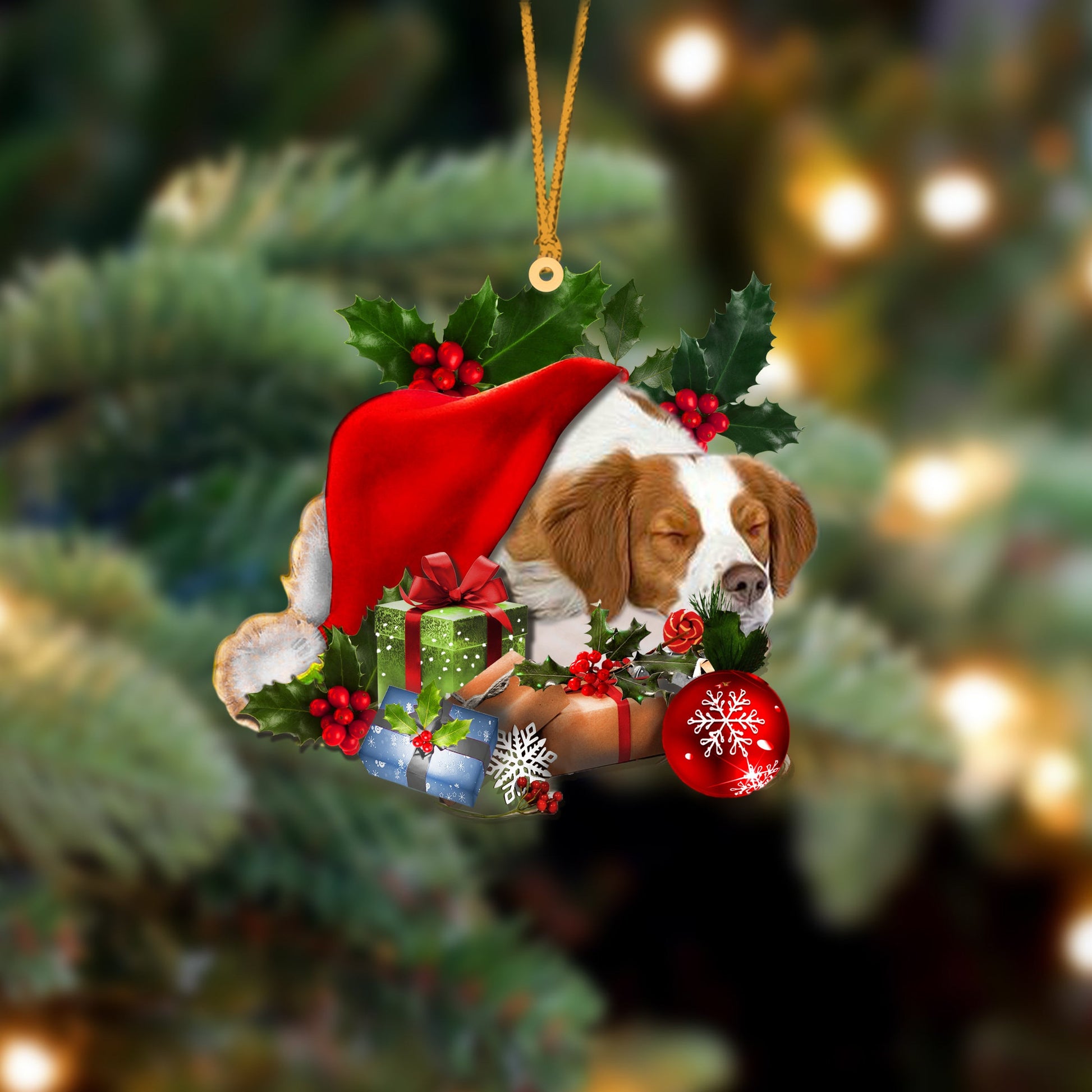 Brittany Spaniel-Sleeping In Hat Two Sides Christmas Plastic Hanging Ornament, Christmas Ornament Gift, Christmas Gift, Christmas Decoration