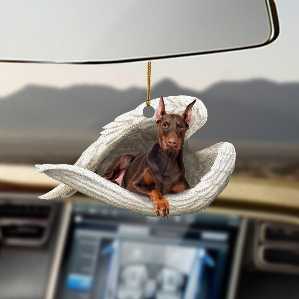 Brown dobermann Sleeping Angel Ornament, Happy Christmas Ornament, Christmas Gift, Christmas Decoration